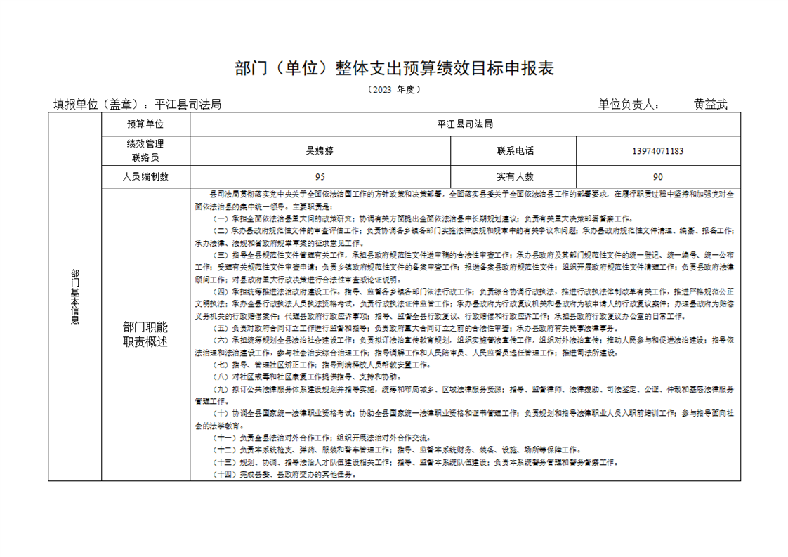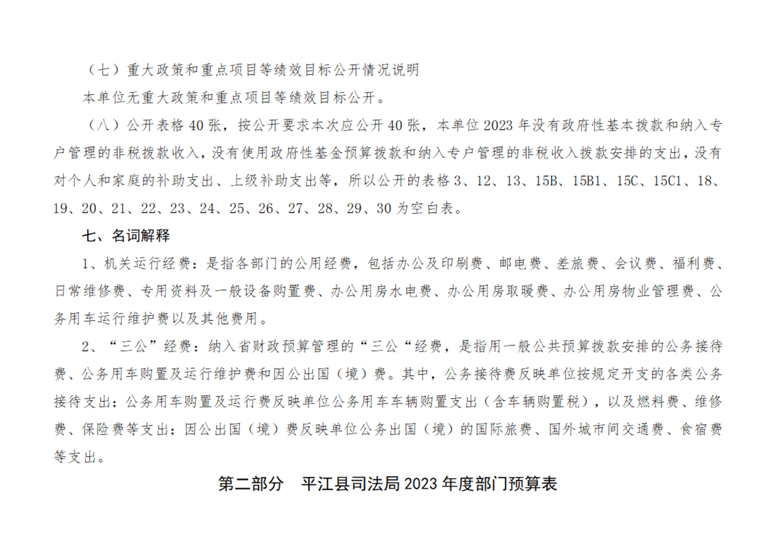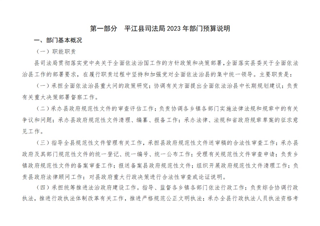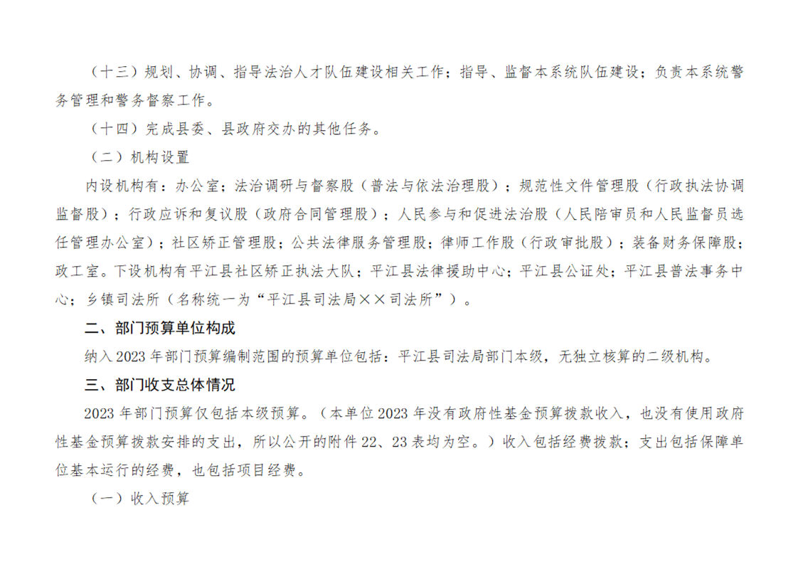 平江县司法局2023年度部门预算公开说明