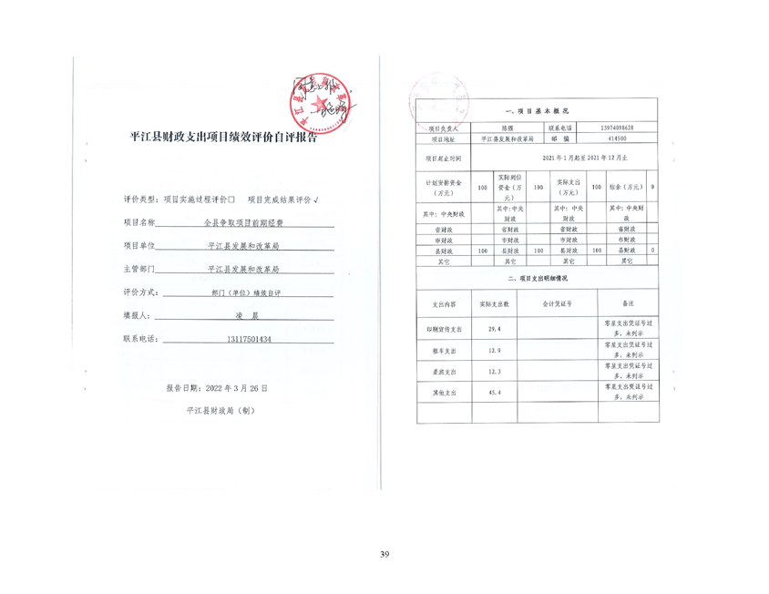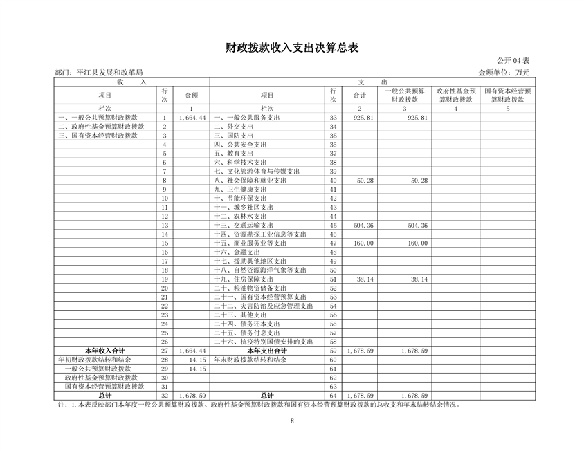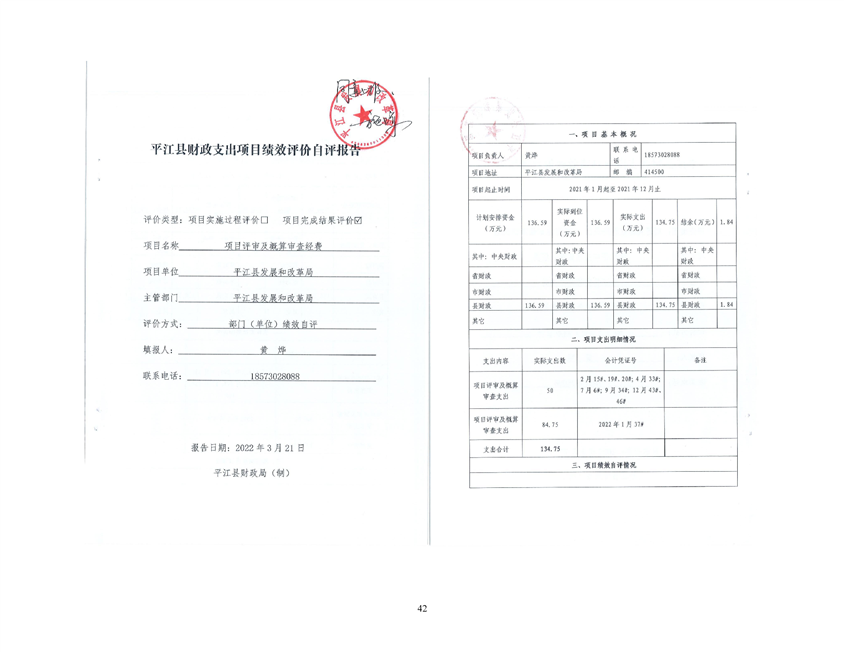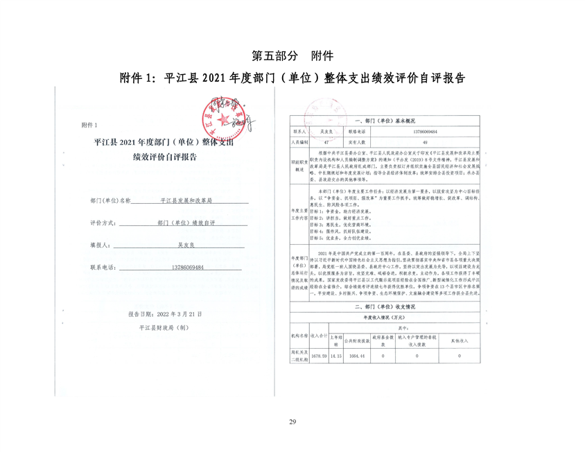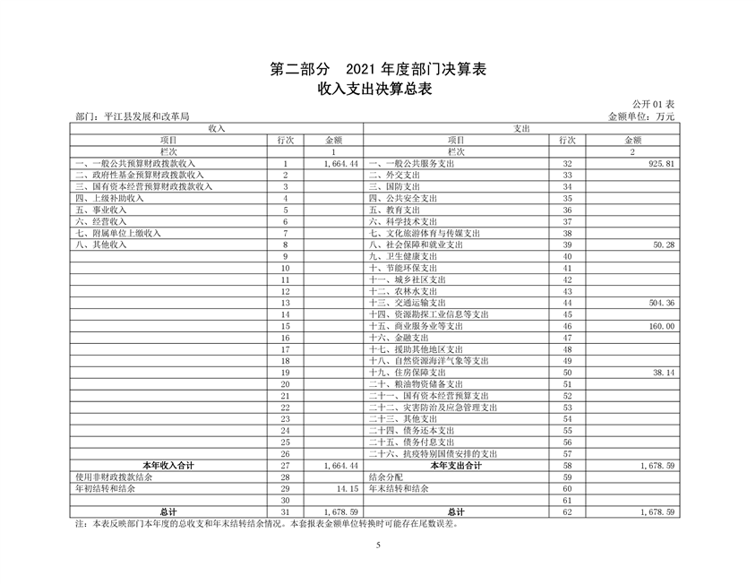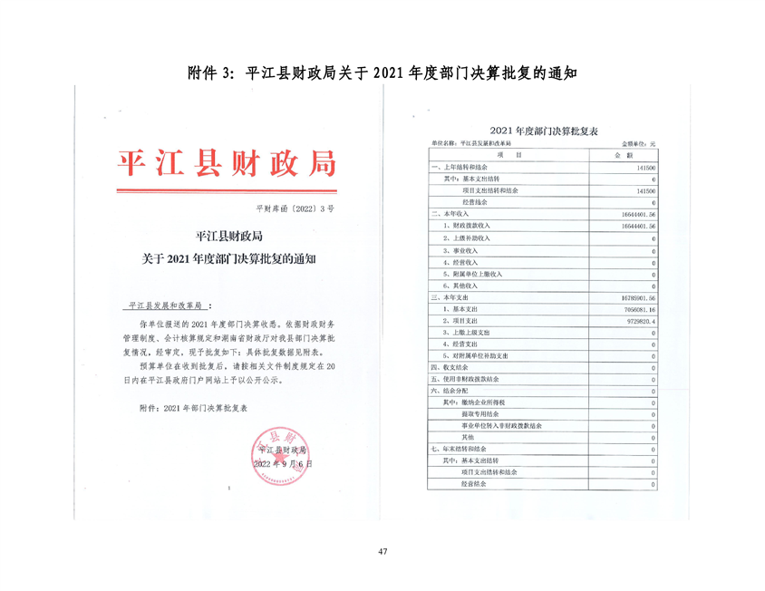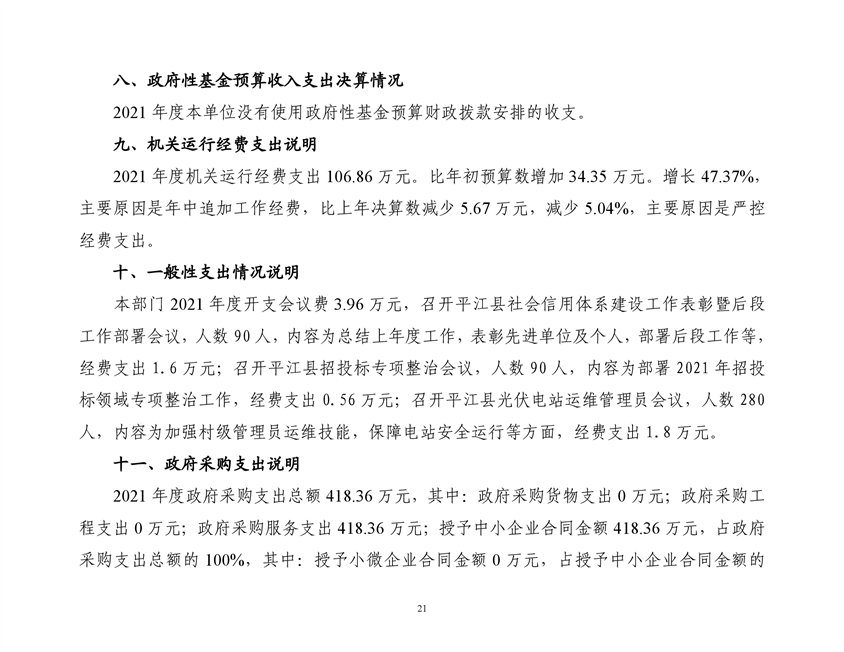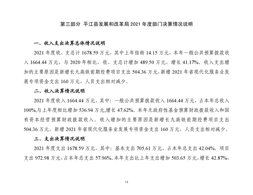 平江县发展和改革局2021年部门决算