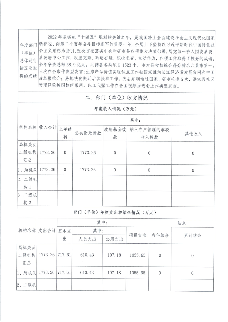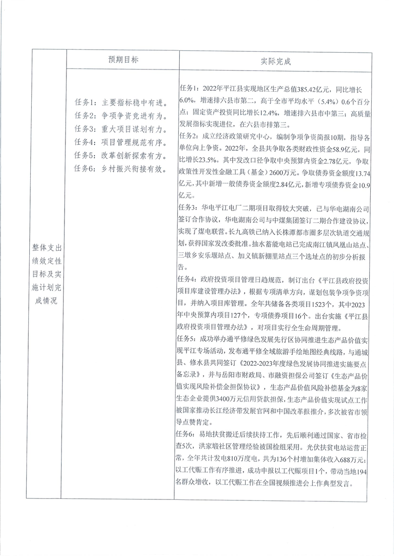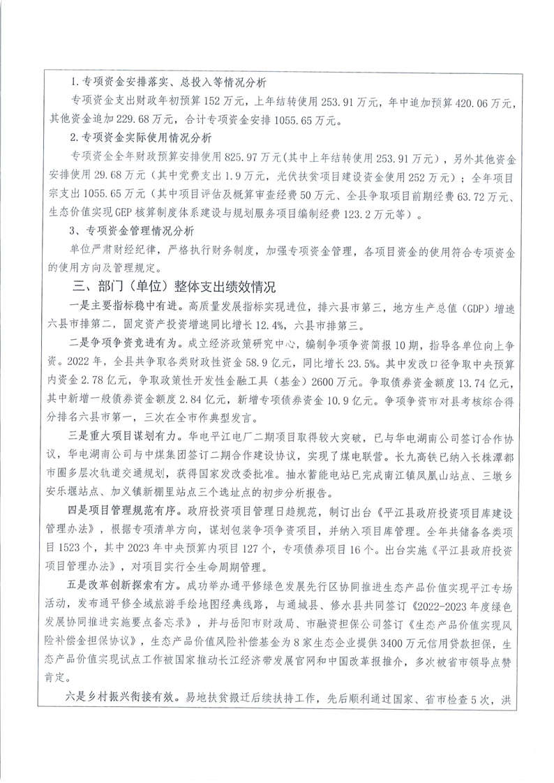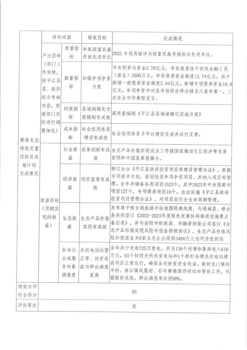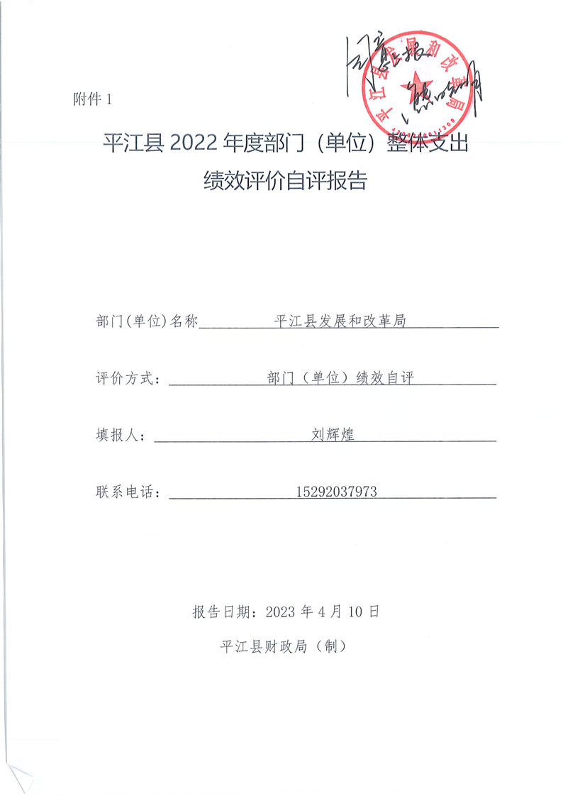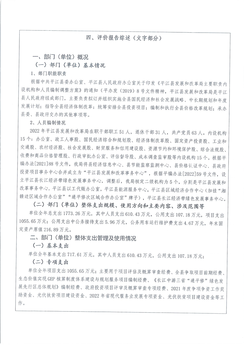 平江县发改局2022年度部门(单位)整体支出绩效评价自评报告