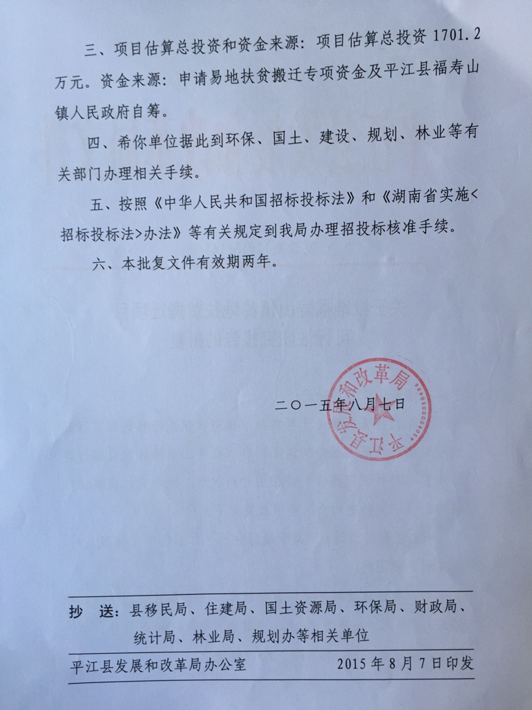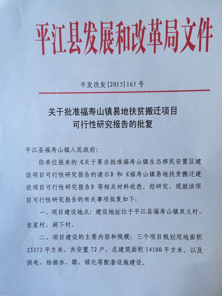 关于批准福寿山镇易地扶贫搬迁项目可行性研究报告的批复