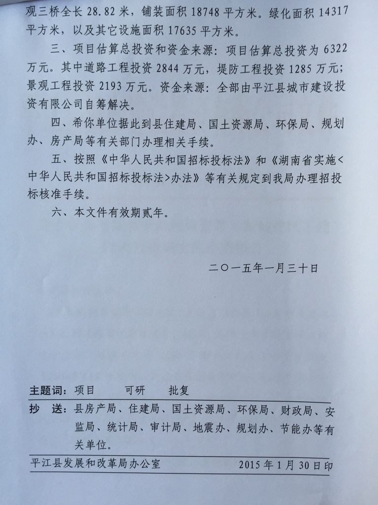 关于平江县甲山河风光带新城片区段建设项目可行性研究报告的批复