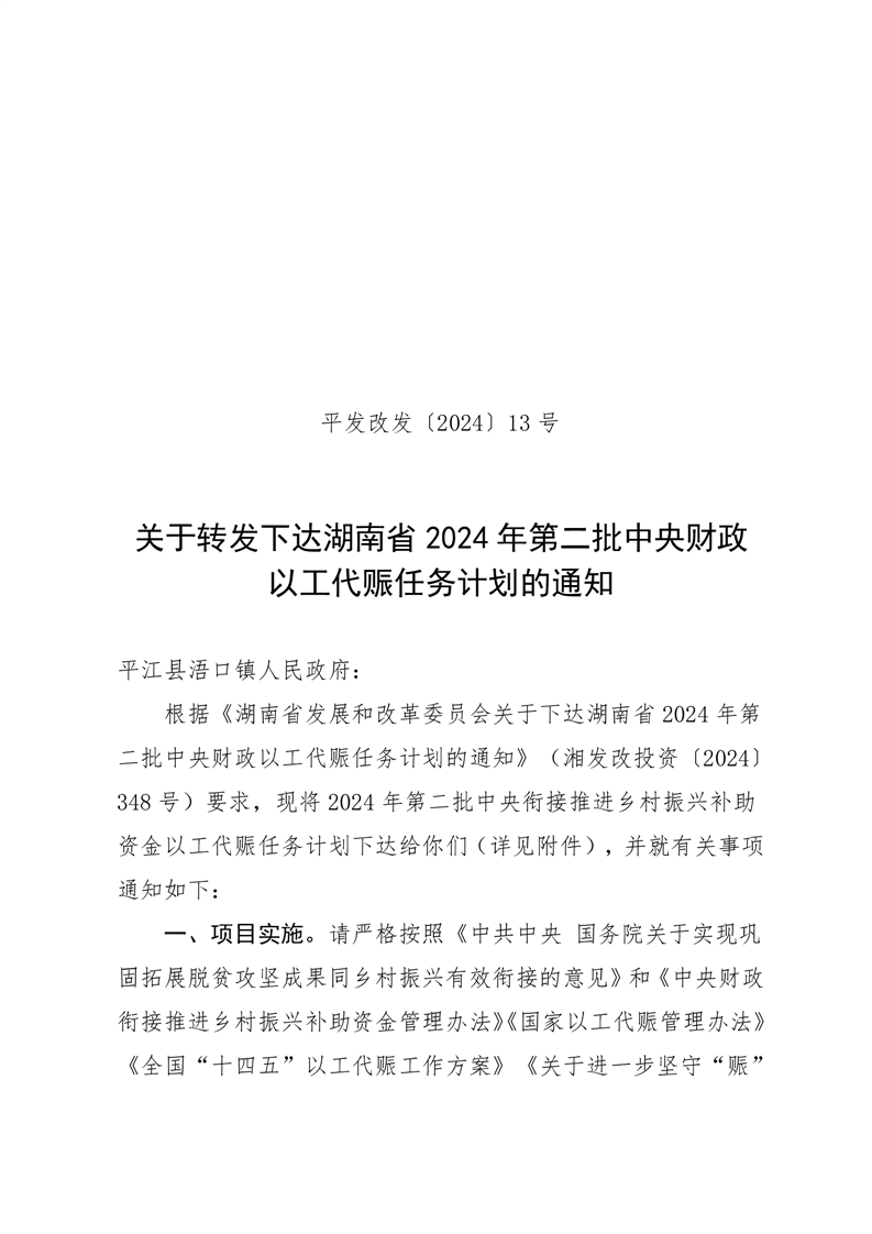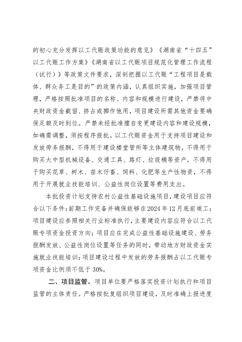 关于转发下达湖南省2024年第二批中央财政以工代赈任务计划的通知