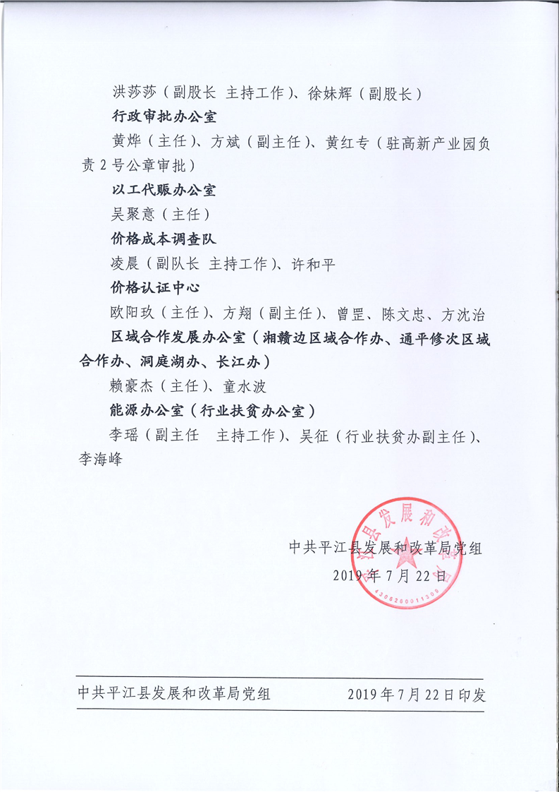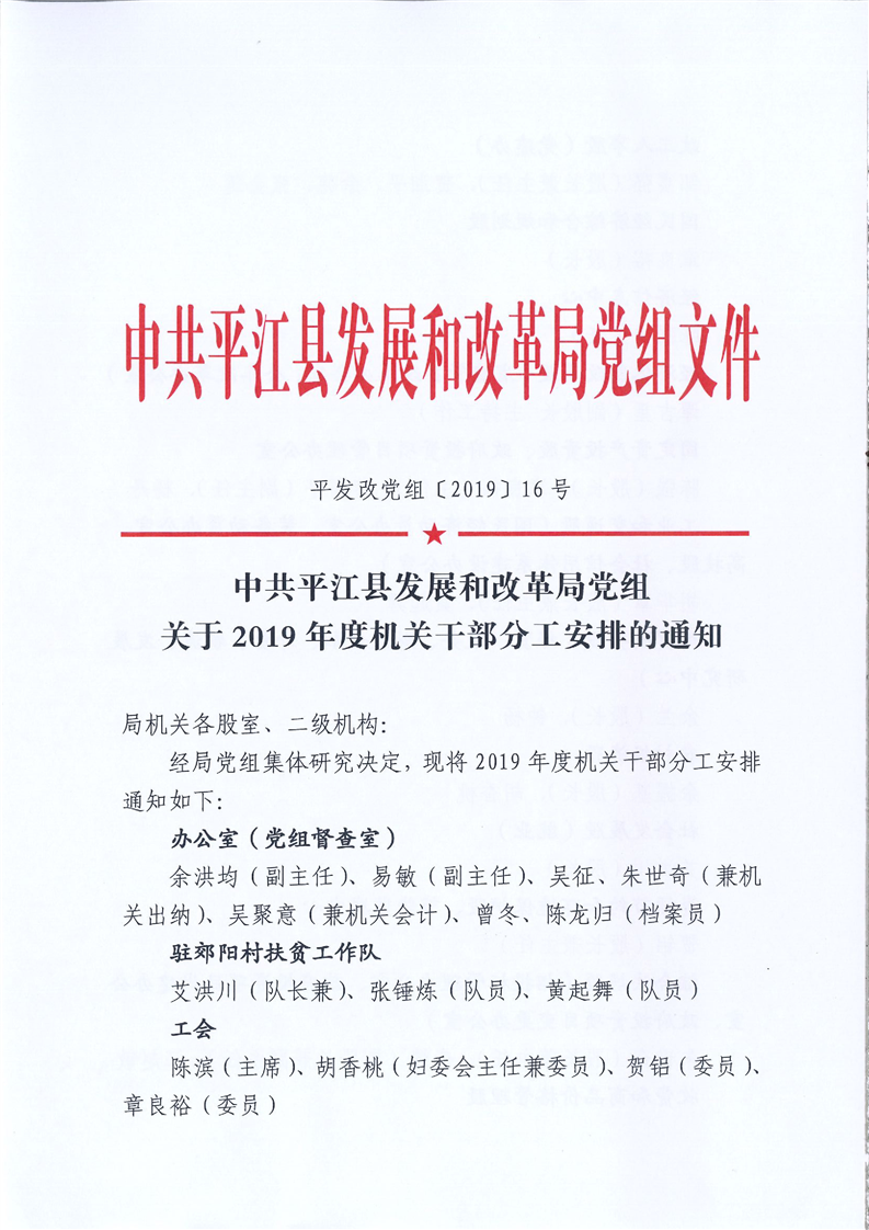中共平江县发展和改革局党组关于2019年度机关干部分工安排的通知