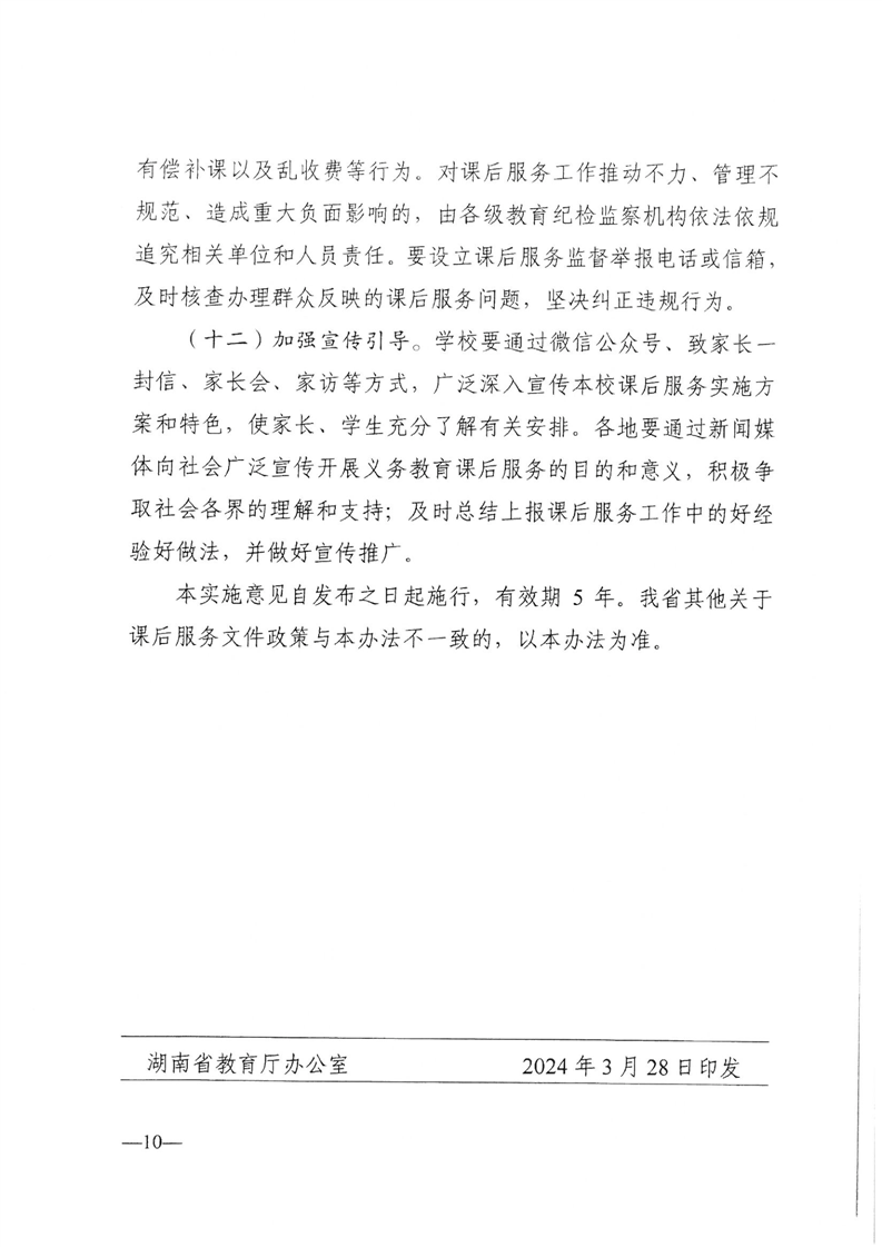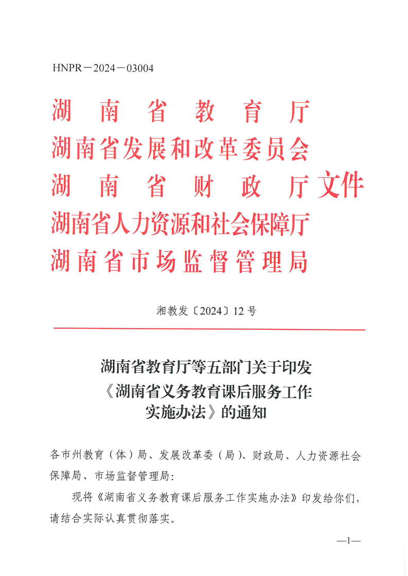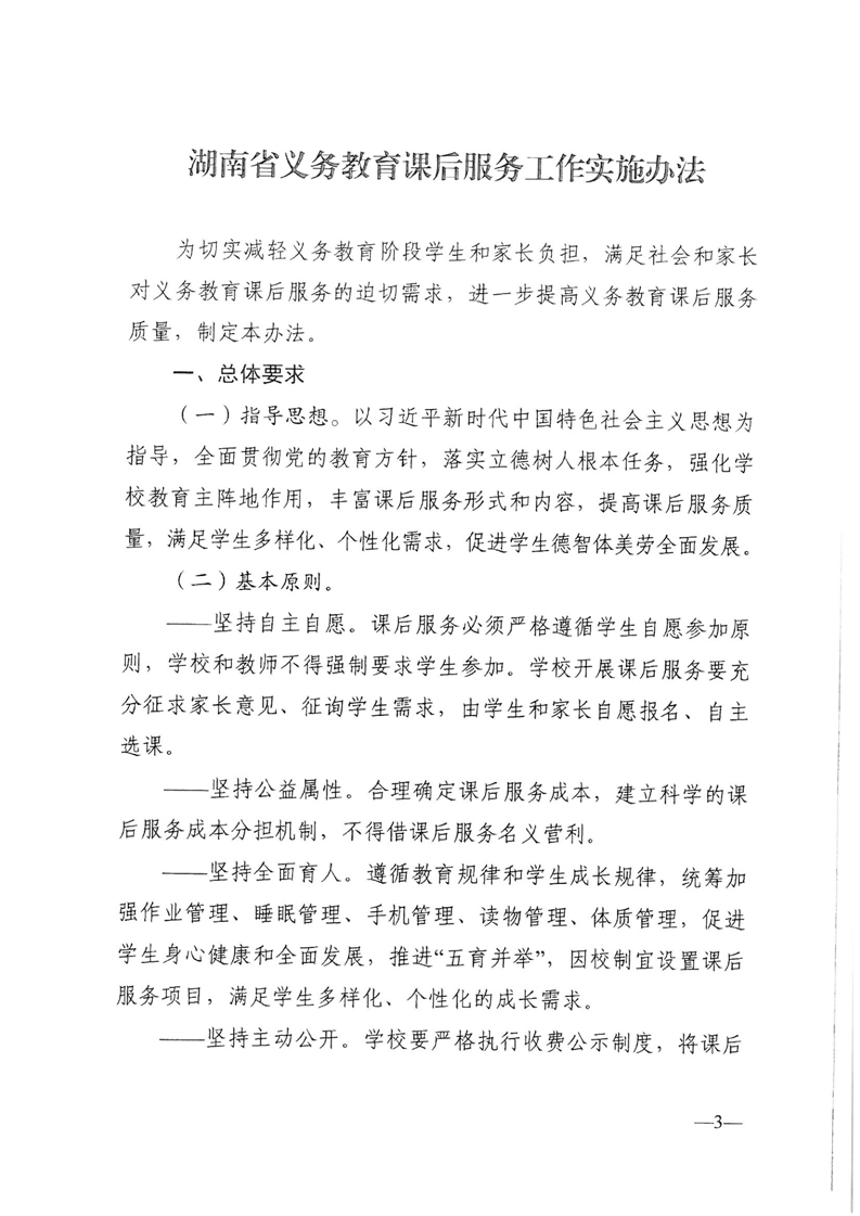 湖南省教育厅等五部门关于印发《湖南省义务教育课后服务工作实施办法》的通知