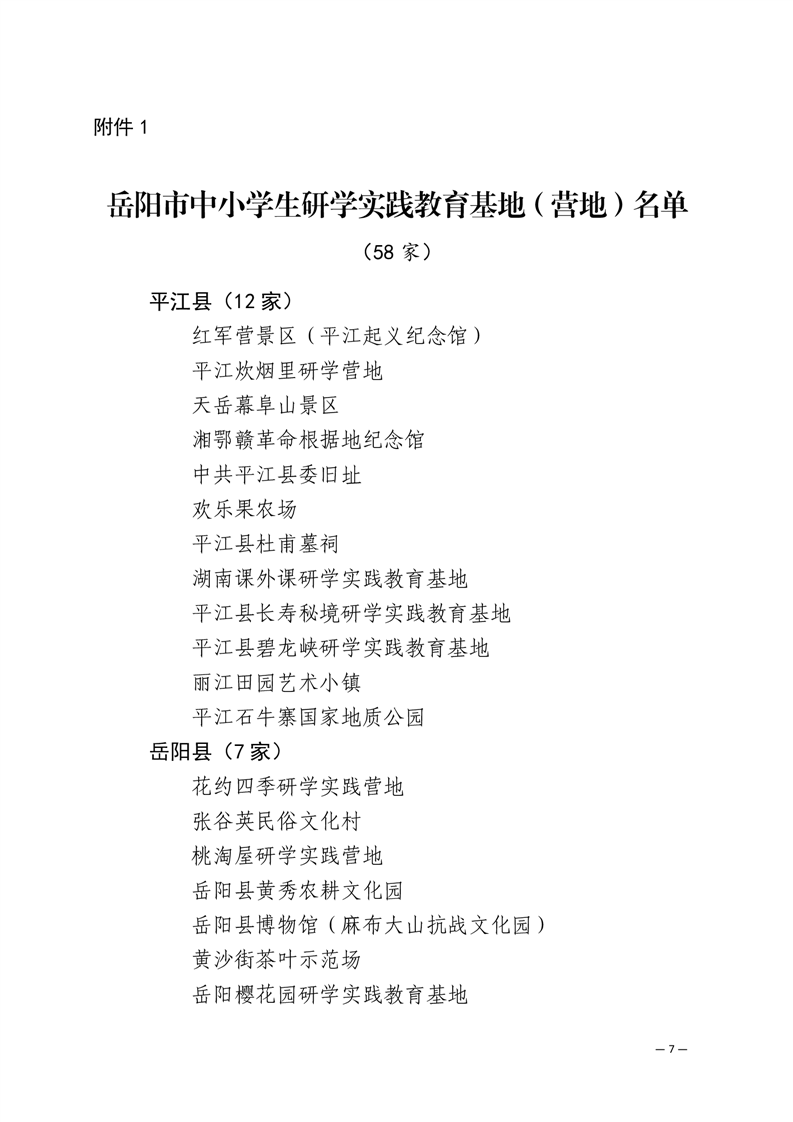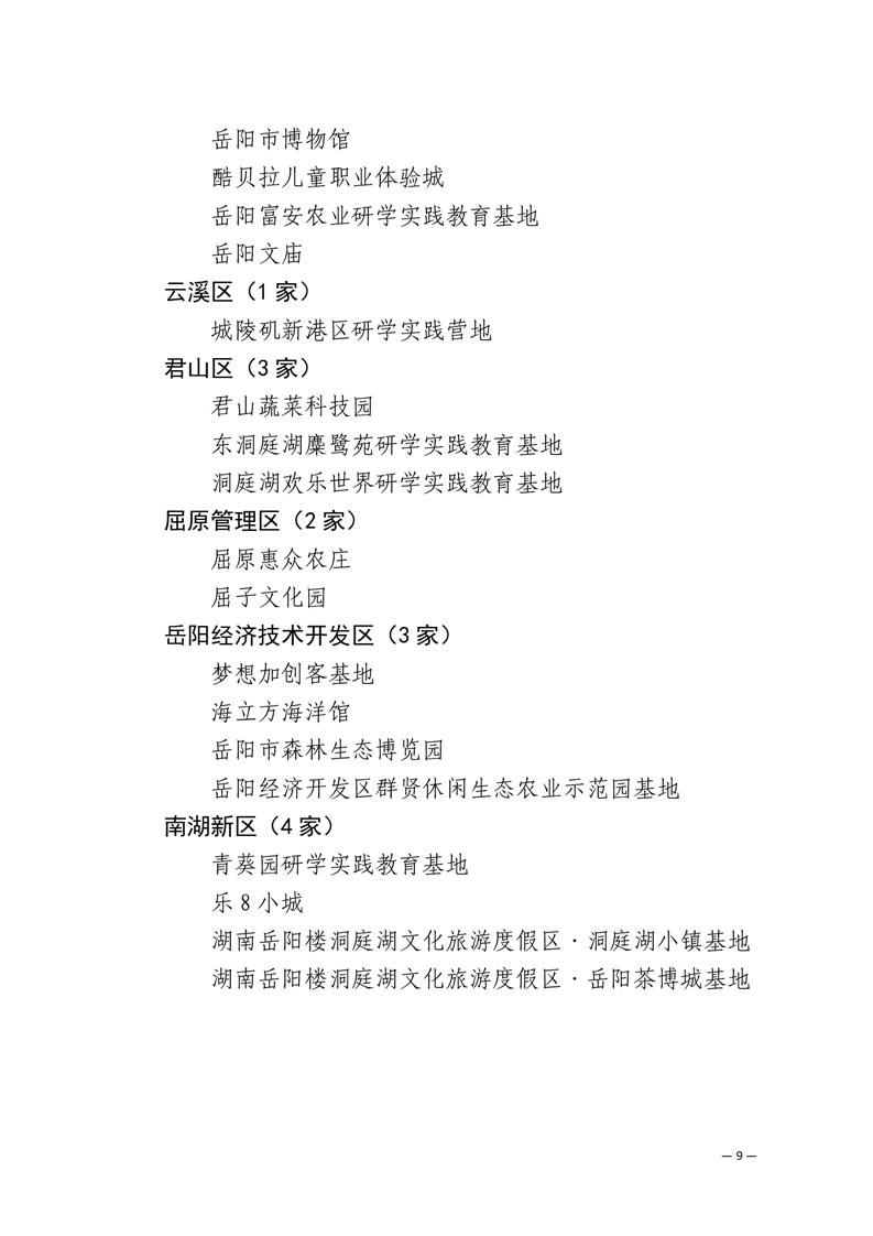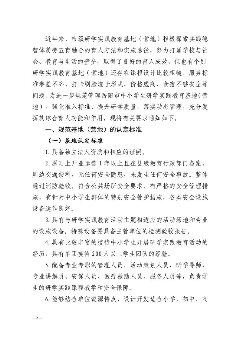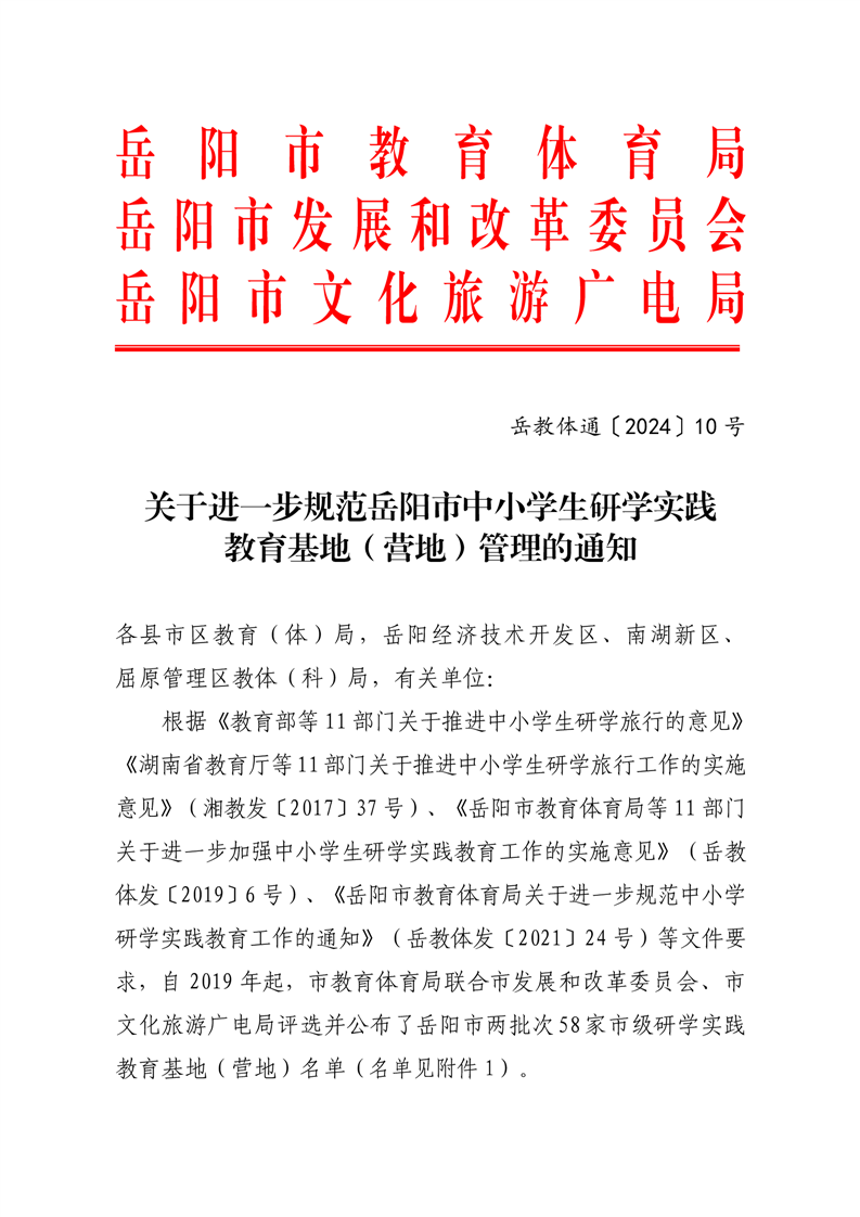 关于进一步规范岳阳市中小学生研学实践教育基地(营地)管理的通知