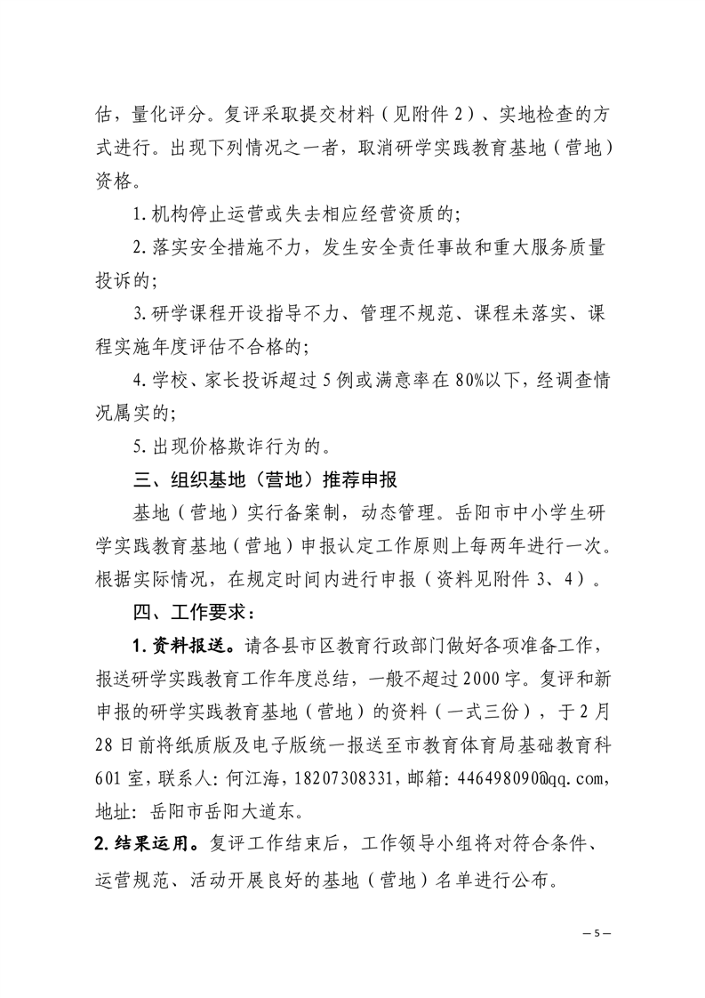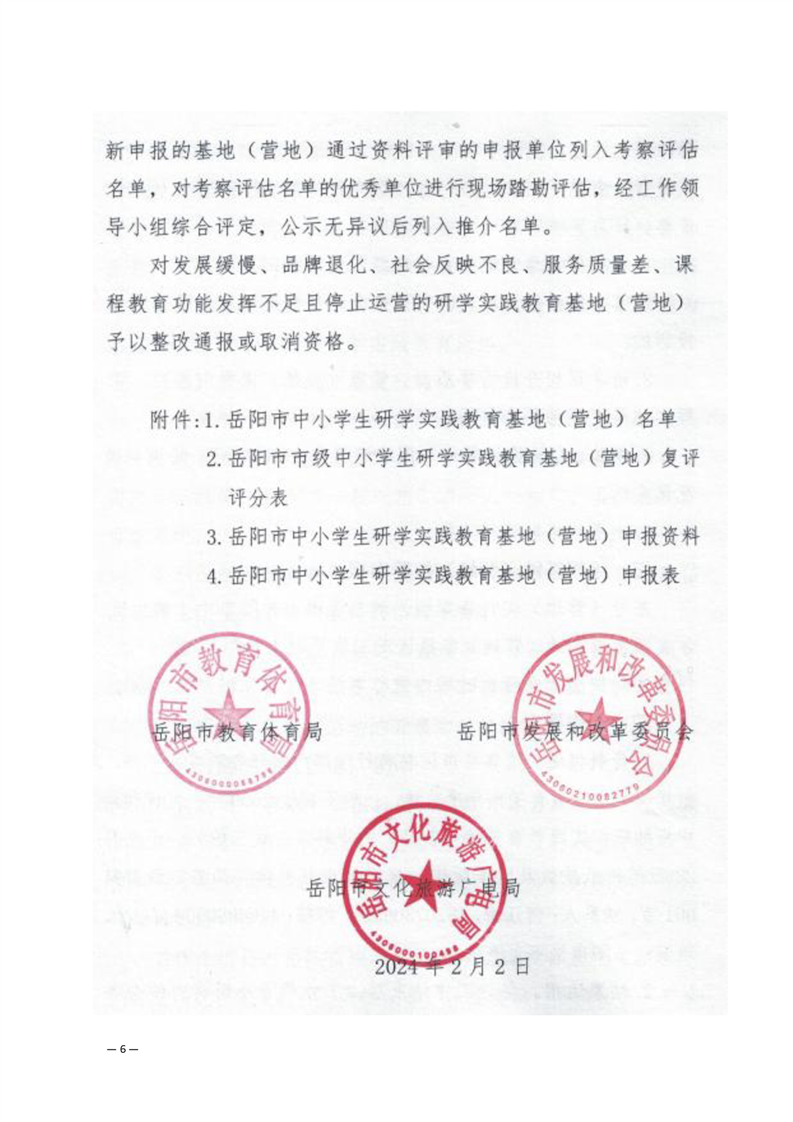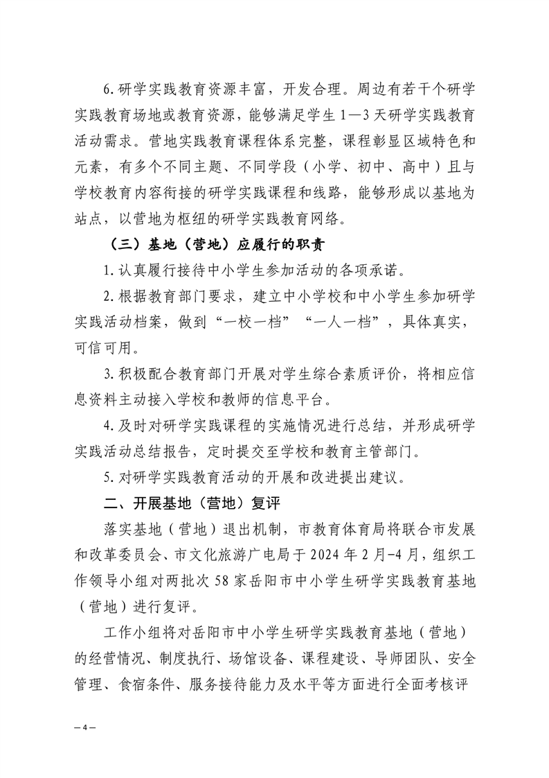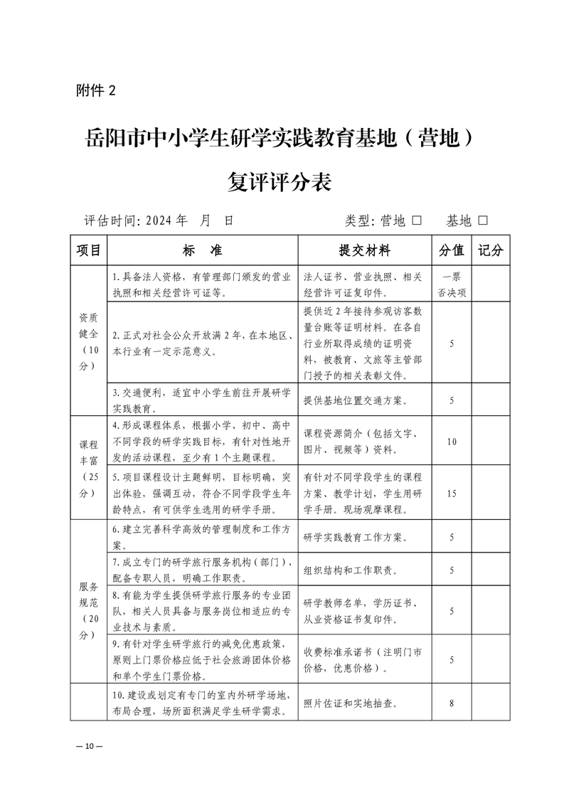 关于进一步规范岳阳市中小学生研学实践教育基地(营地)管理的通知