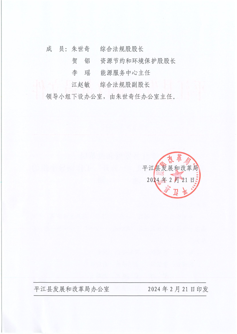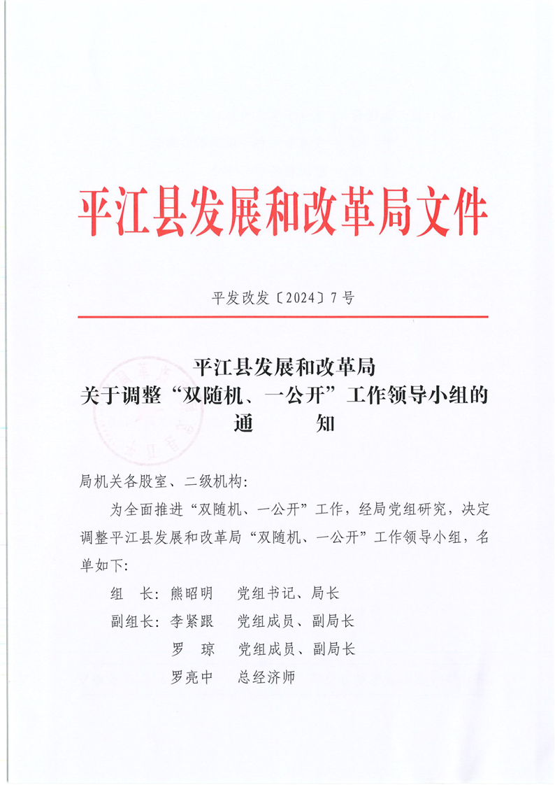 平发改发〔2024〕7号关于调整“双随机、一公开”工作领导小组的通知