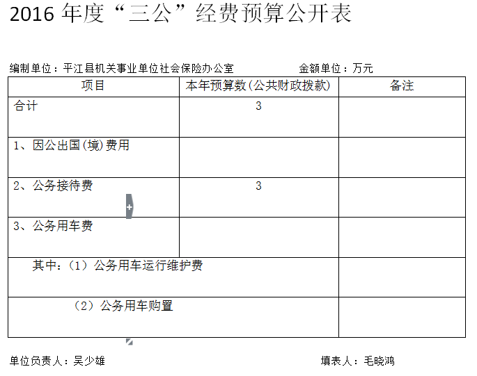 平江县机关社保办2016年三公经费预算公开表