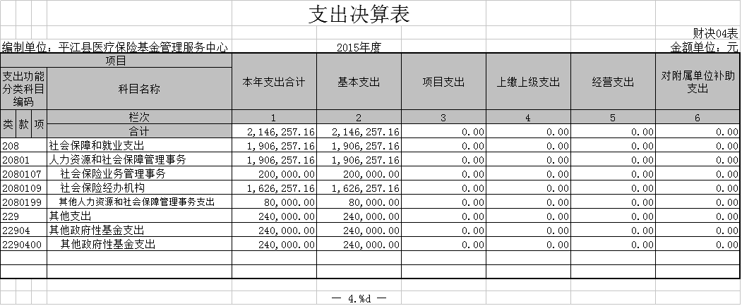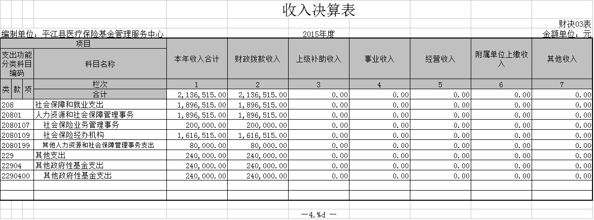 2015年由于医疗保险工作得到了县委、县政府的高度重视,得到了县财政、劳动、卫生等部门的高度关心,全年财政拨款收入2136515元,上年度结余9742.16元。