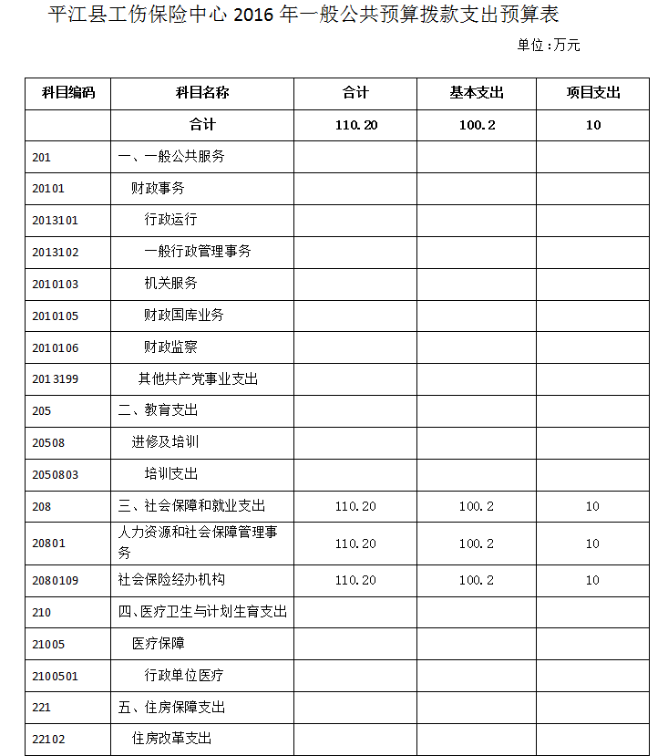 2016年度预算基本支出为:110.2万元。(其中工资福利支出72.82万元;商品和服务支出24.21万元;对个人和家庭补助支出3.14万元;工伤职工管理服务专项经费10万元。)