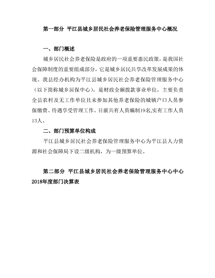 平江县城乡居民社会养老保险管理服务中心2018年部门决算编报说明