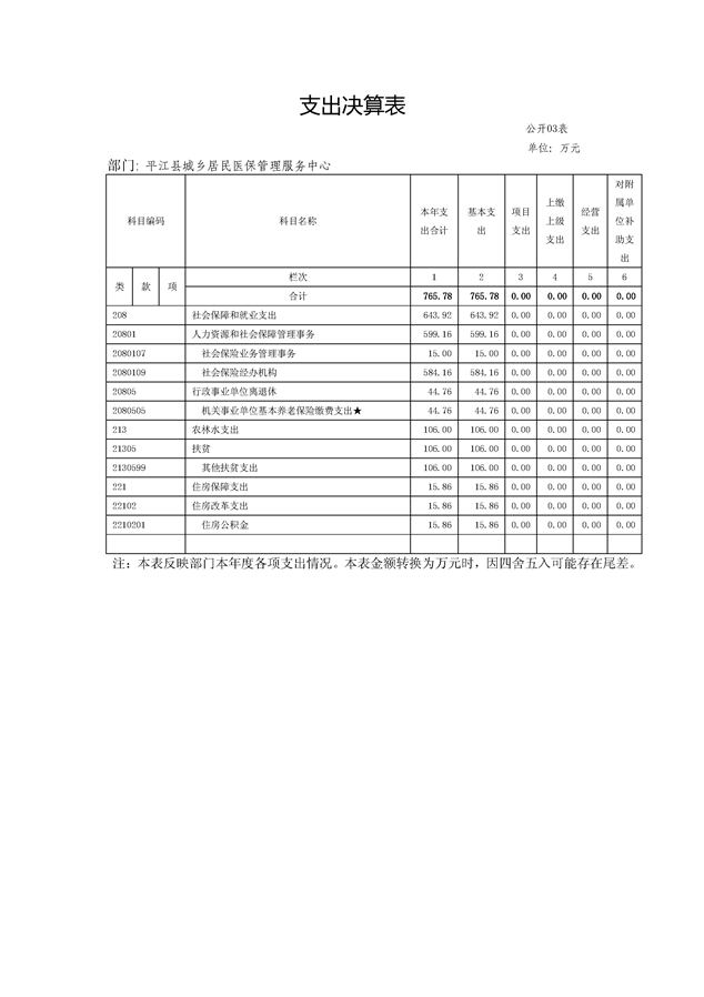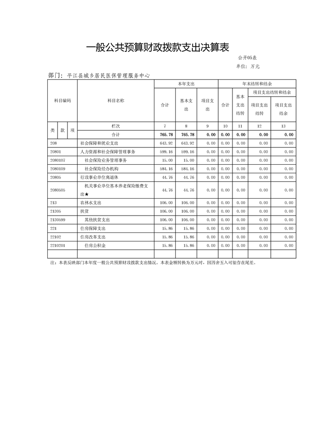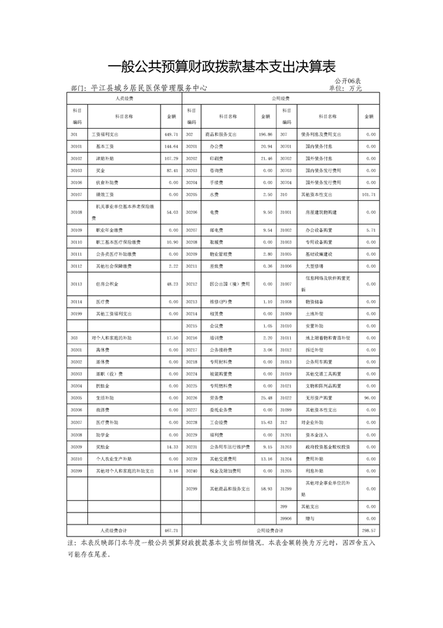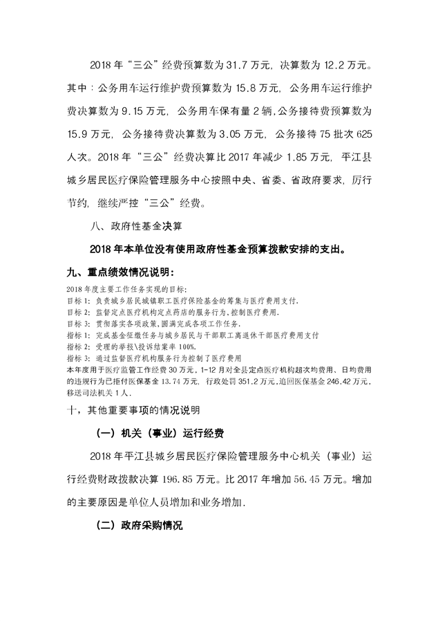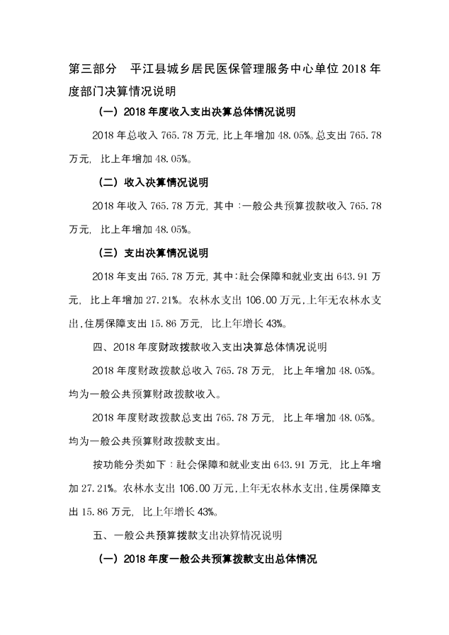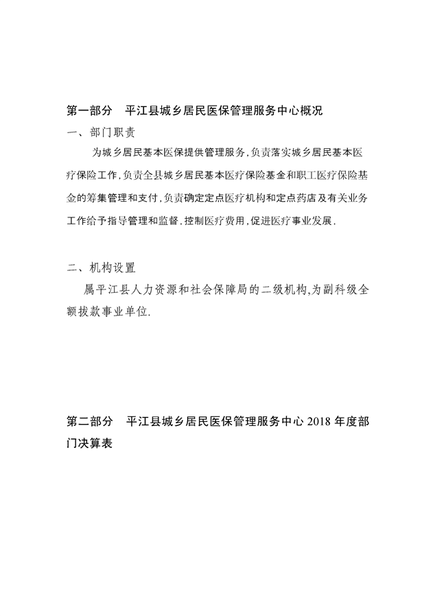 平江县城乡居民医保管理服务中心2018年度部门决算编报说明