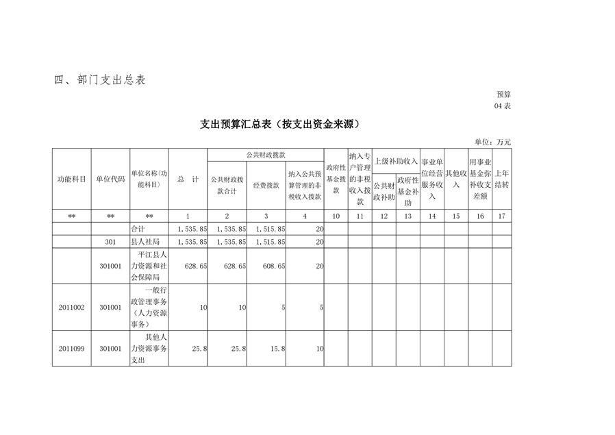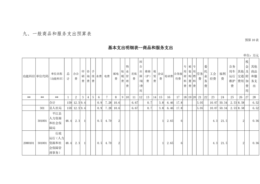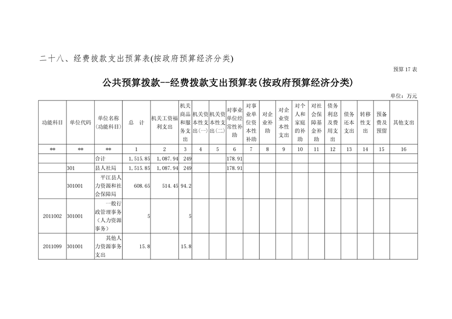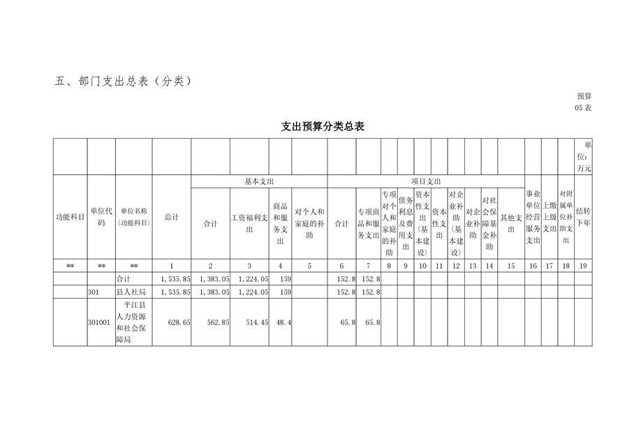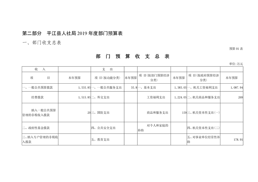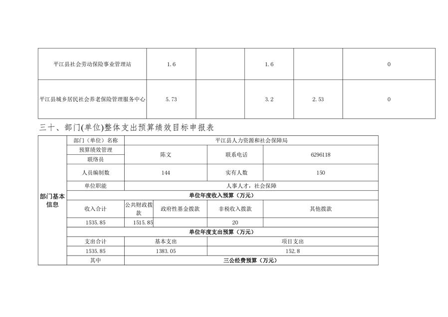 平江县人力资源和社会保障局2019年度部门预算编报说明