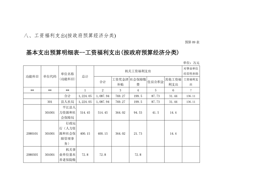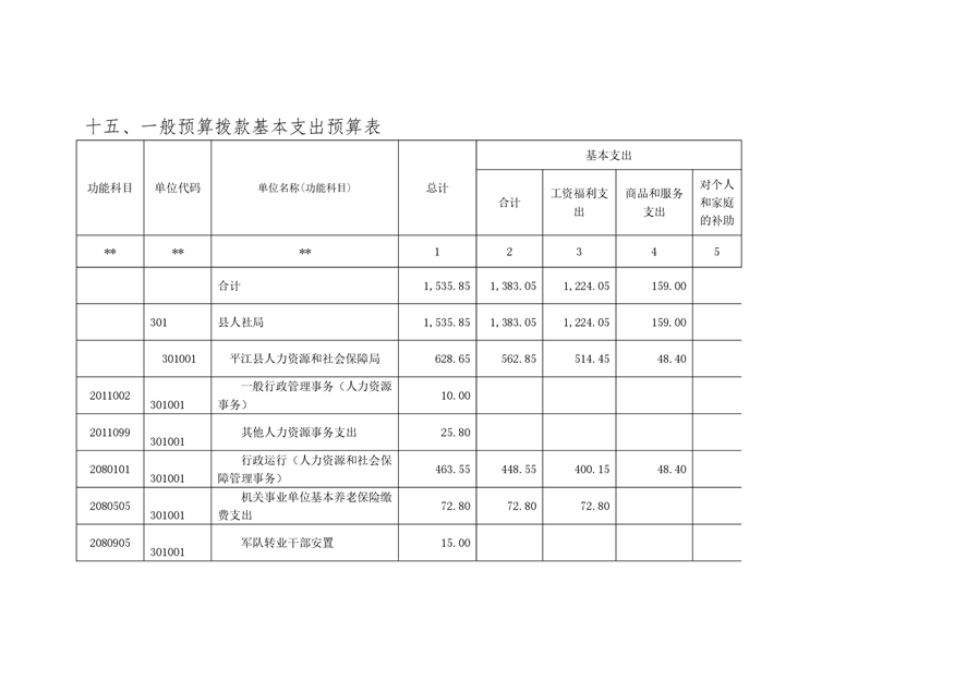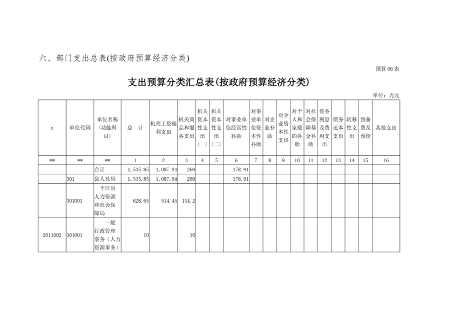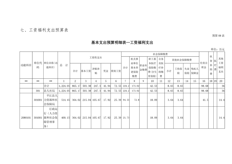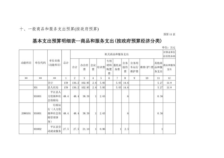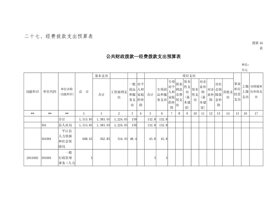 平江县人力资源和社会保障局2019年度部门预算编报说明