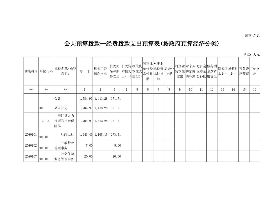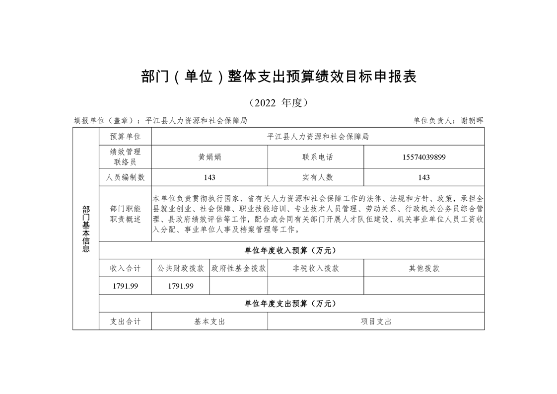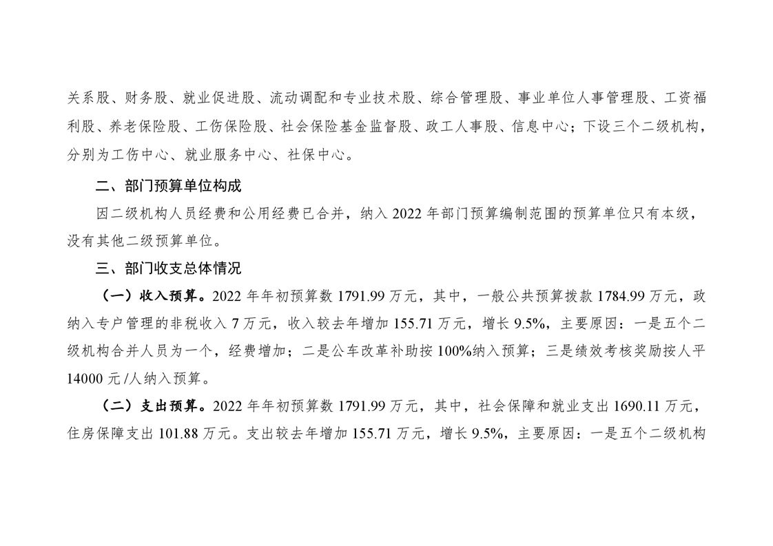 2022年平江县人社局部门预算公开说明