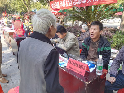 10月17日社保站举行“进社区送温暖”活动,为行动不便的企业离退休人员上门资格认证