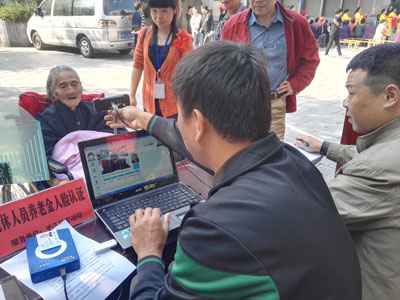 10月17日社保站举行“进社区送温暖”活动,为行动不便的企业离退休人员上门资格认证