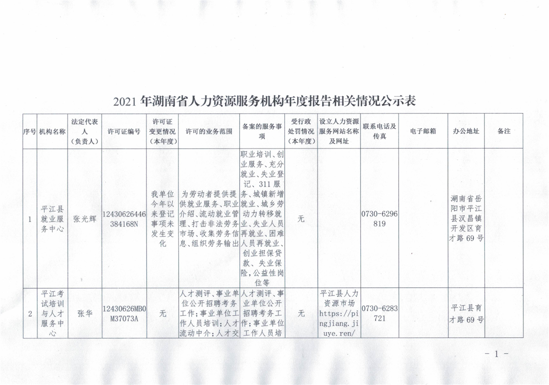 2021年湖南省人力资源服务机构年度报告相关情况公示表