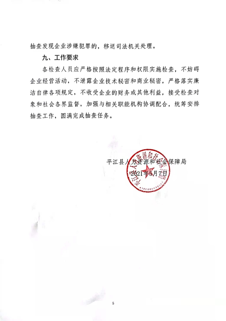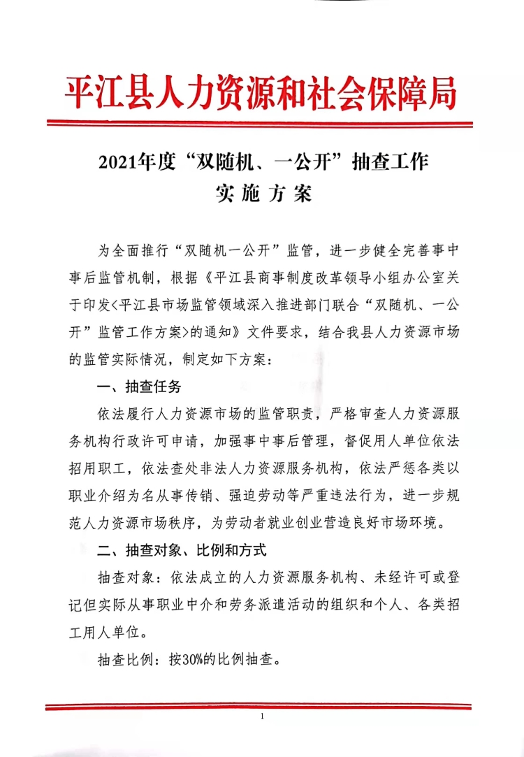 平江县人社局2021年度“双随机、一公开”抽查工作实施方案