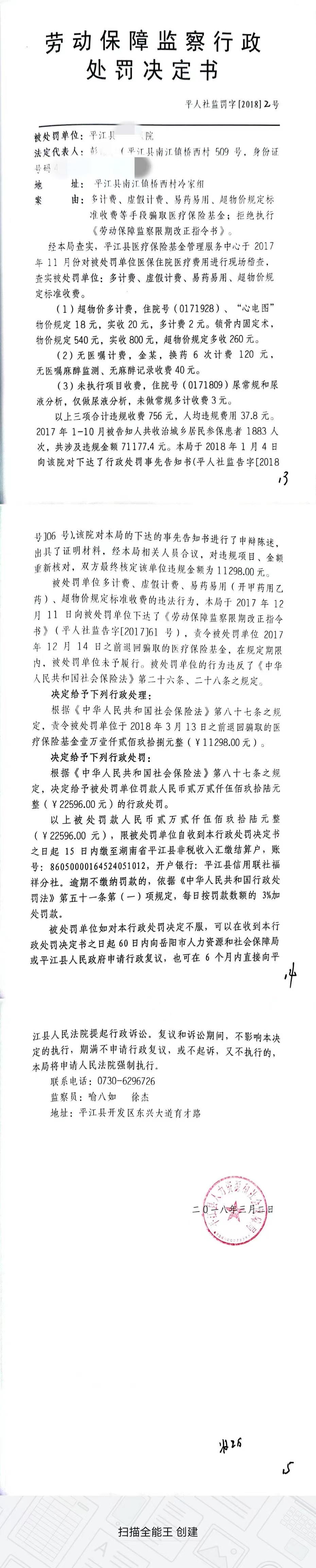 劳动保障监察行政处罚决定书(平人社监罚字[2018]2号)