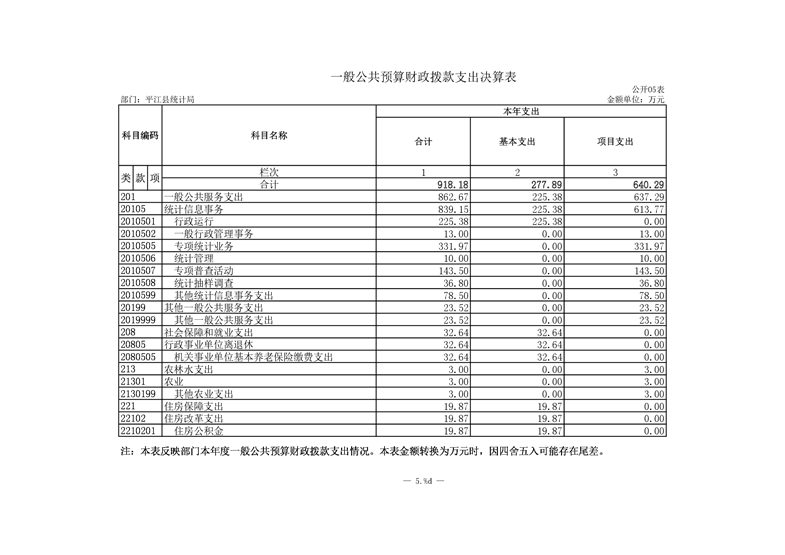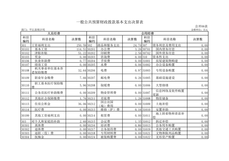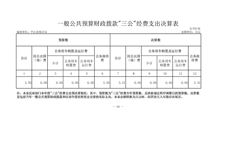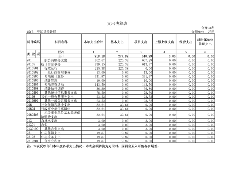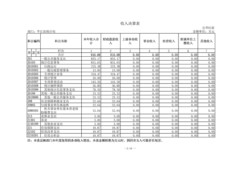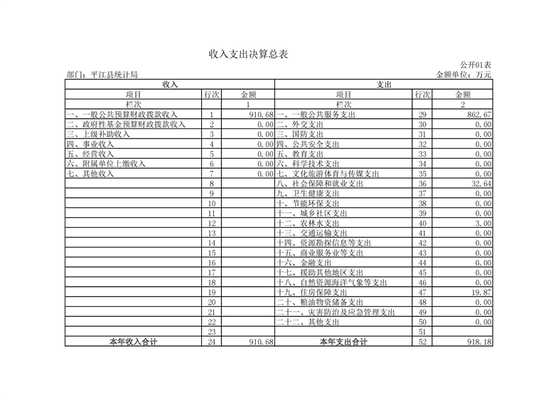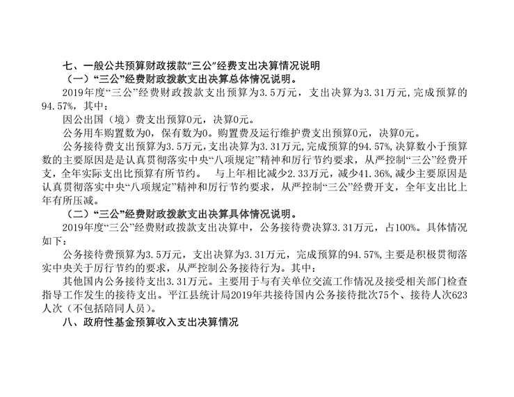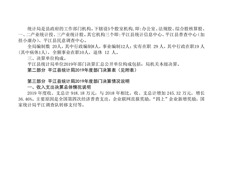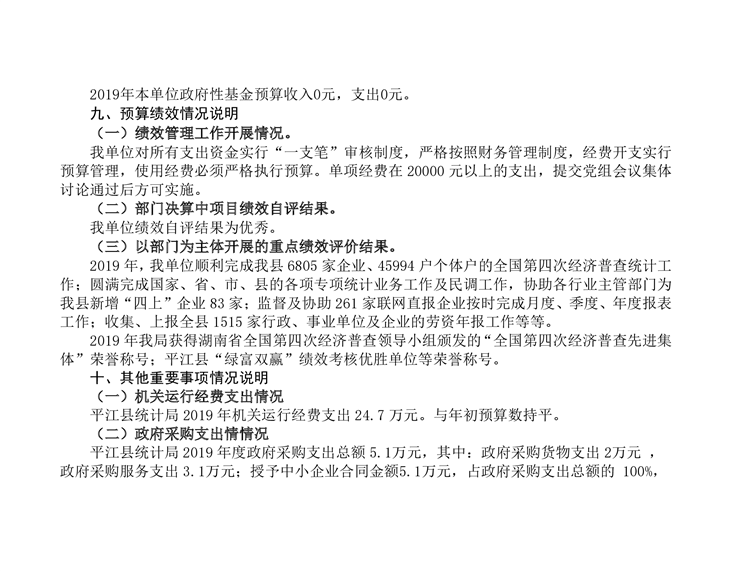 平江县统计局2019年度部门决算公开