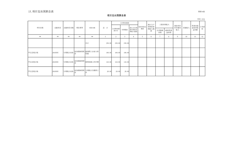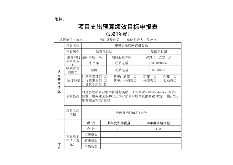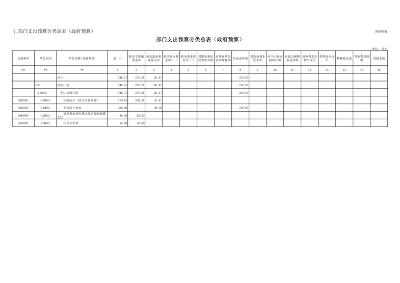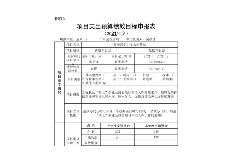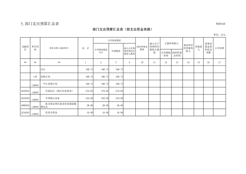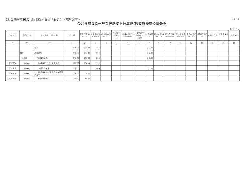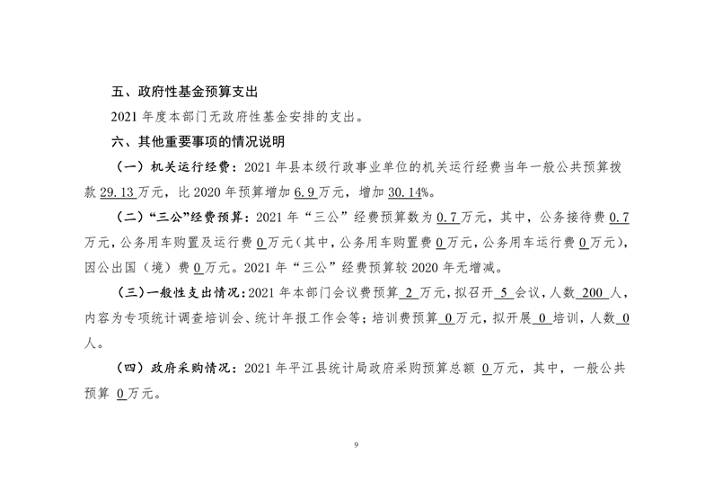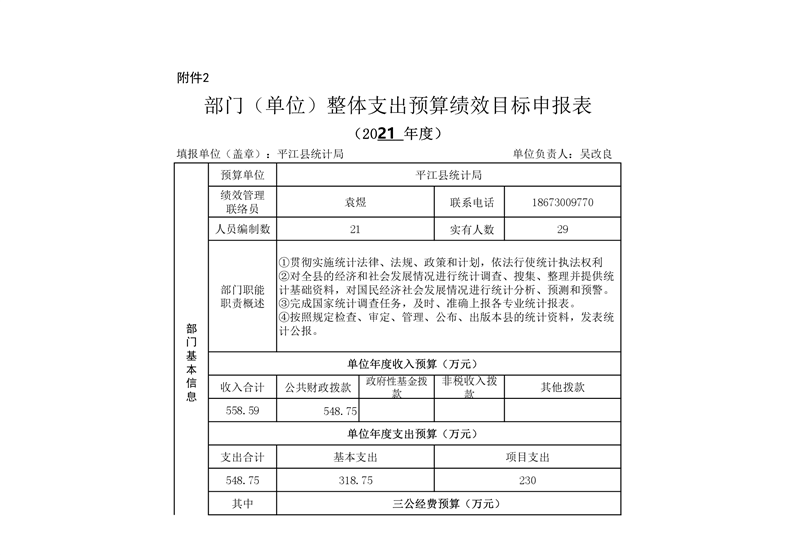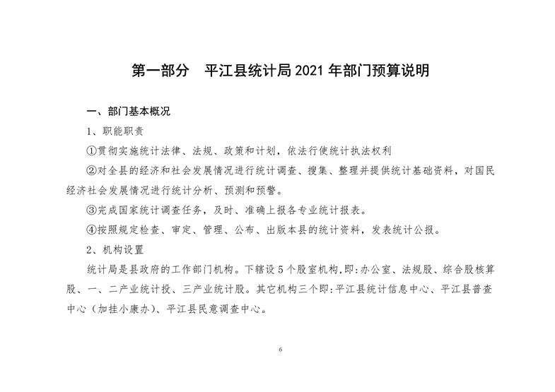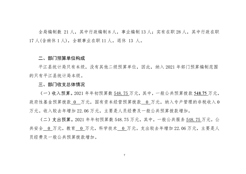 平江县统计局2021年部门预算公开
