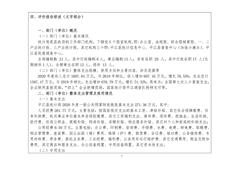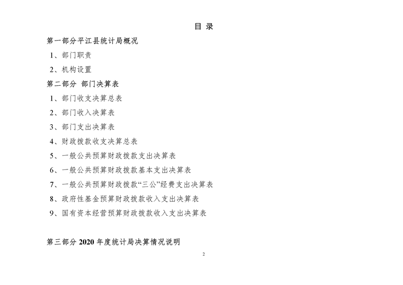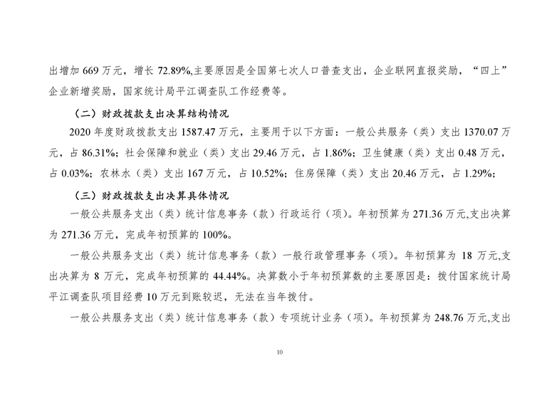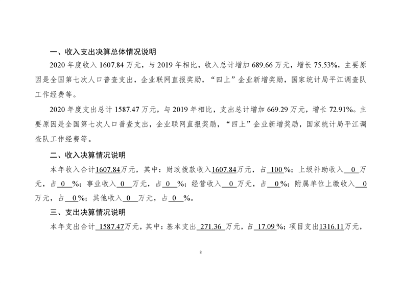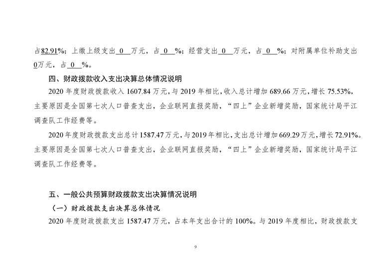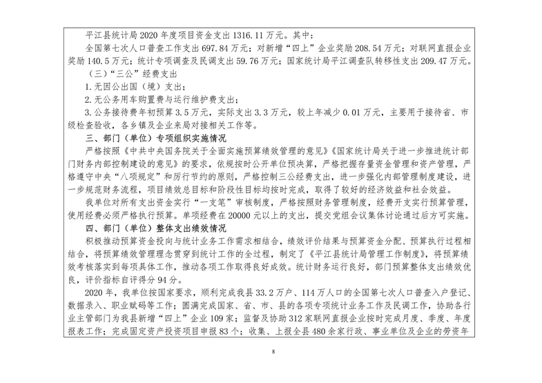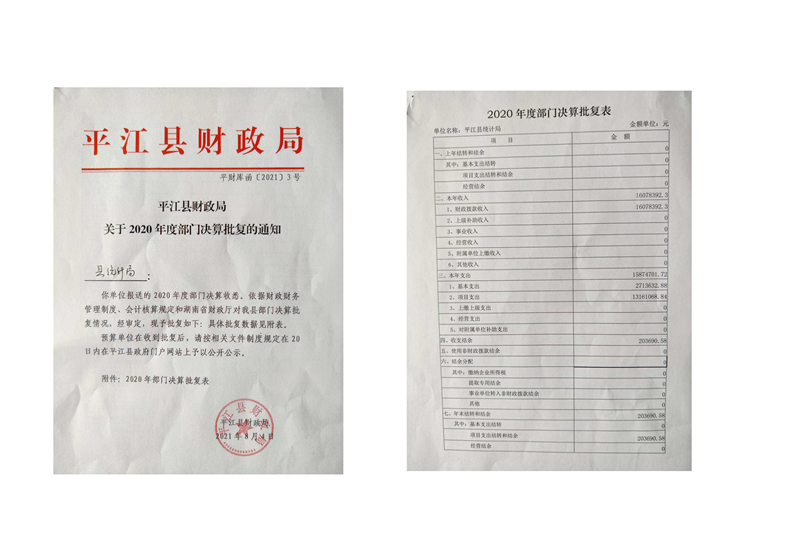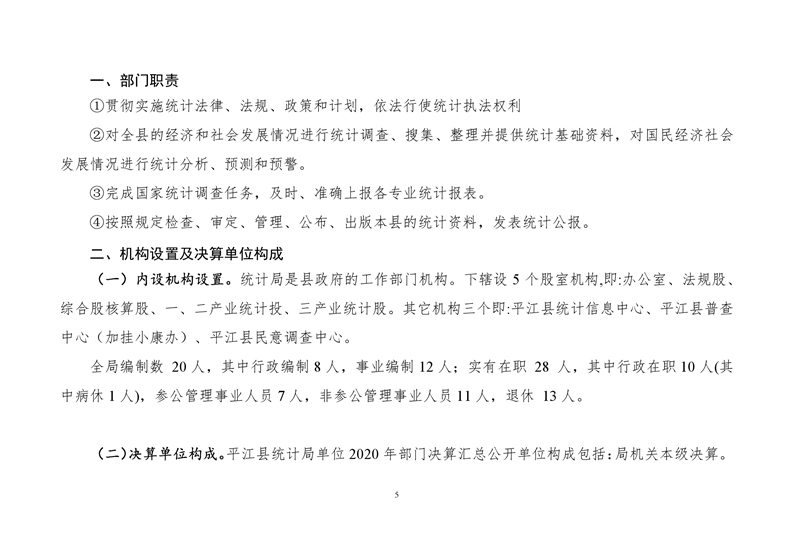 平江县统计局2020年度部门决算公开
