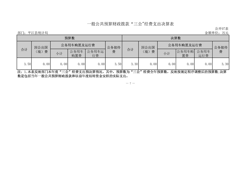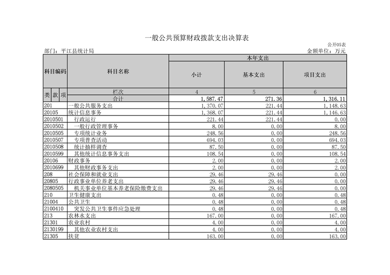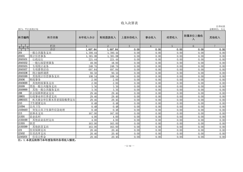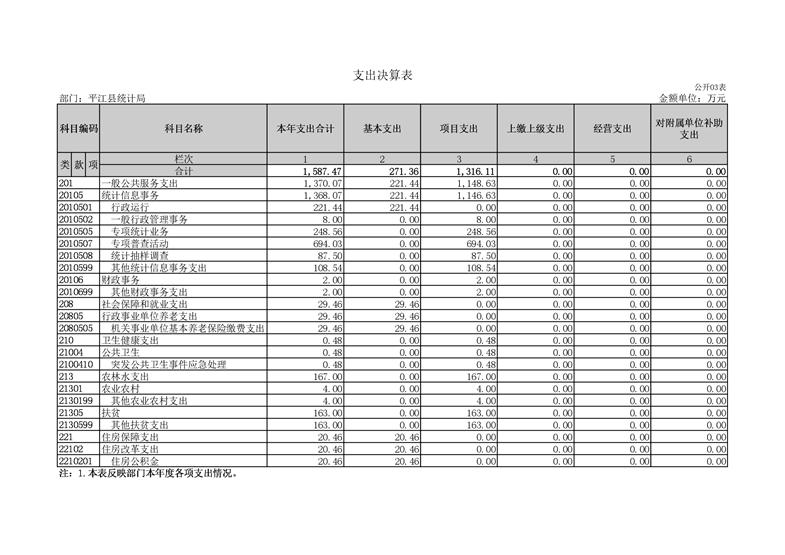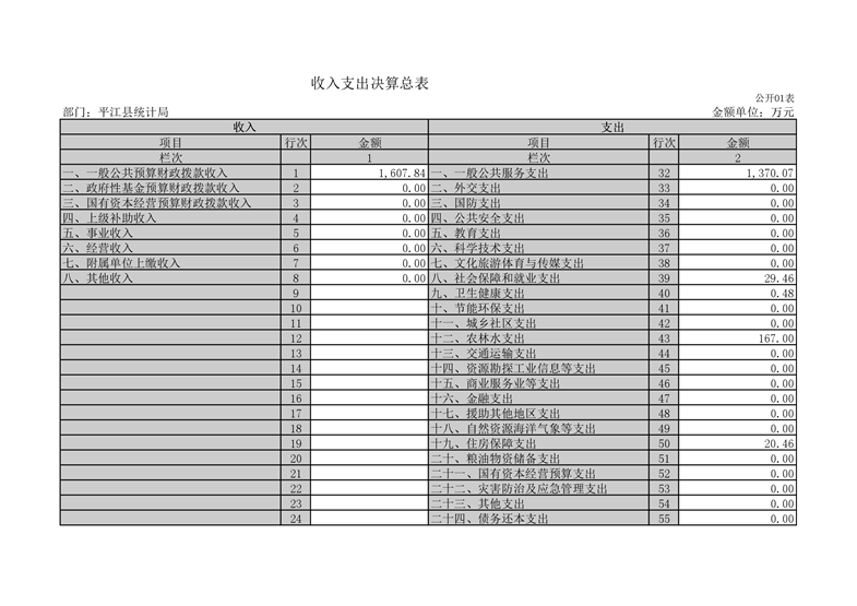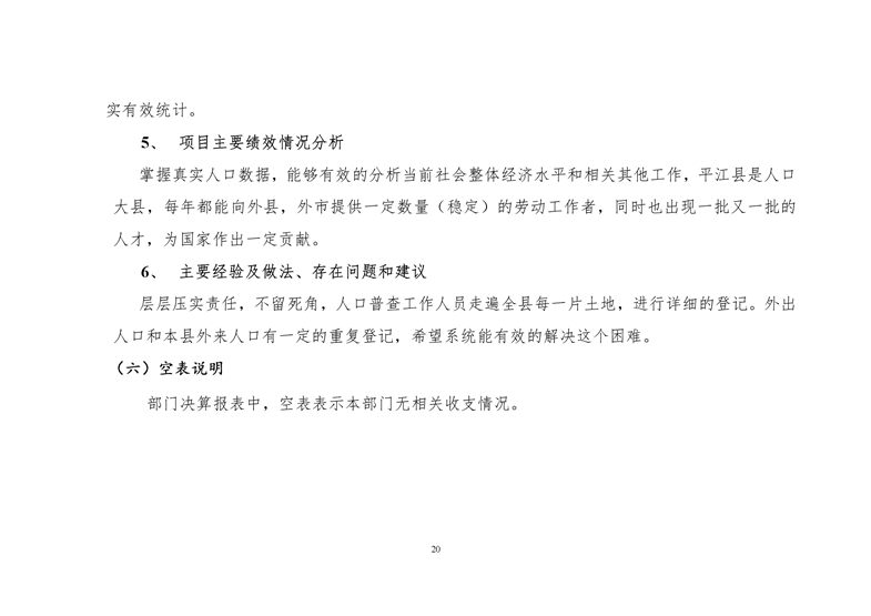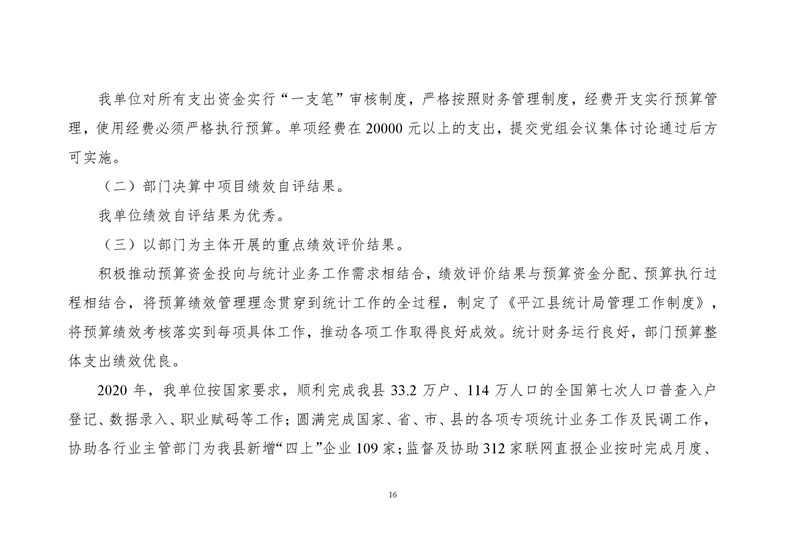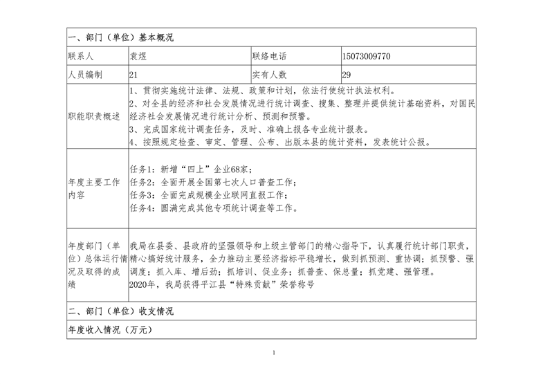 平江县统计局2020年度部门决算公开
