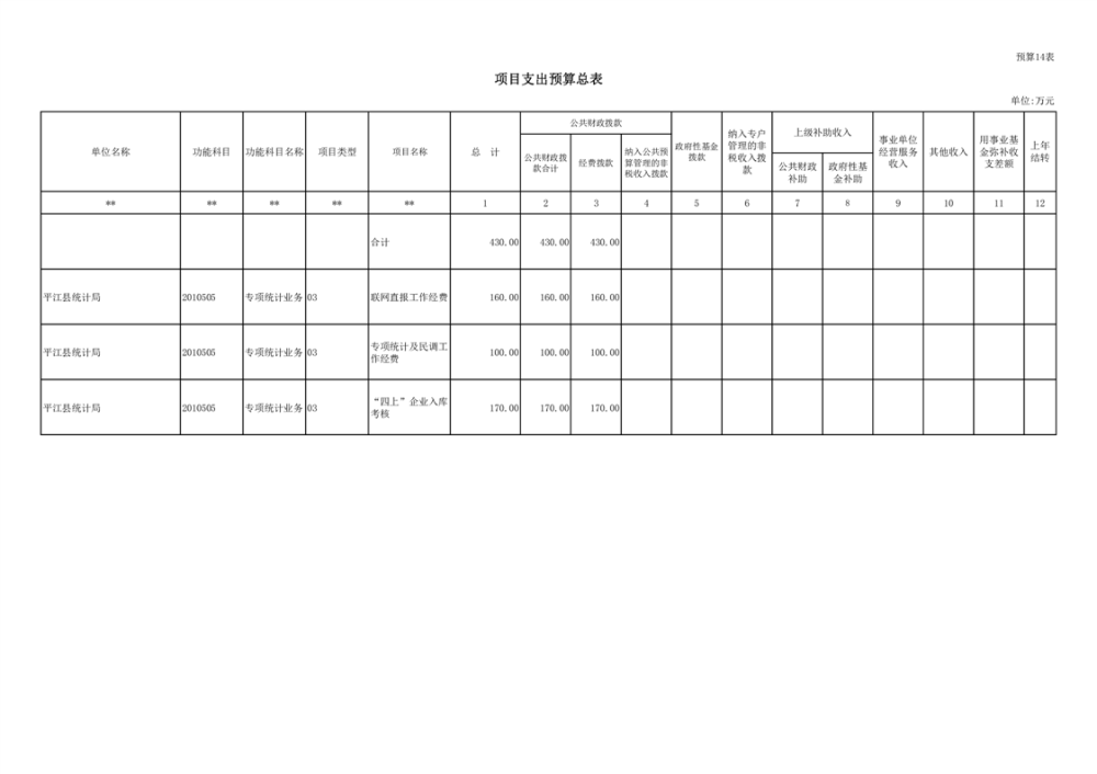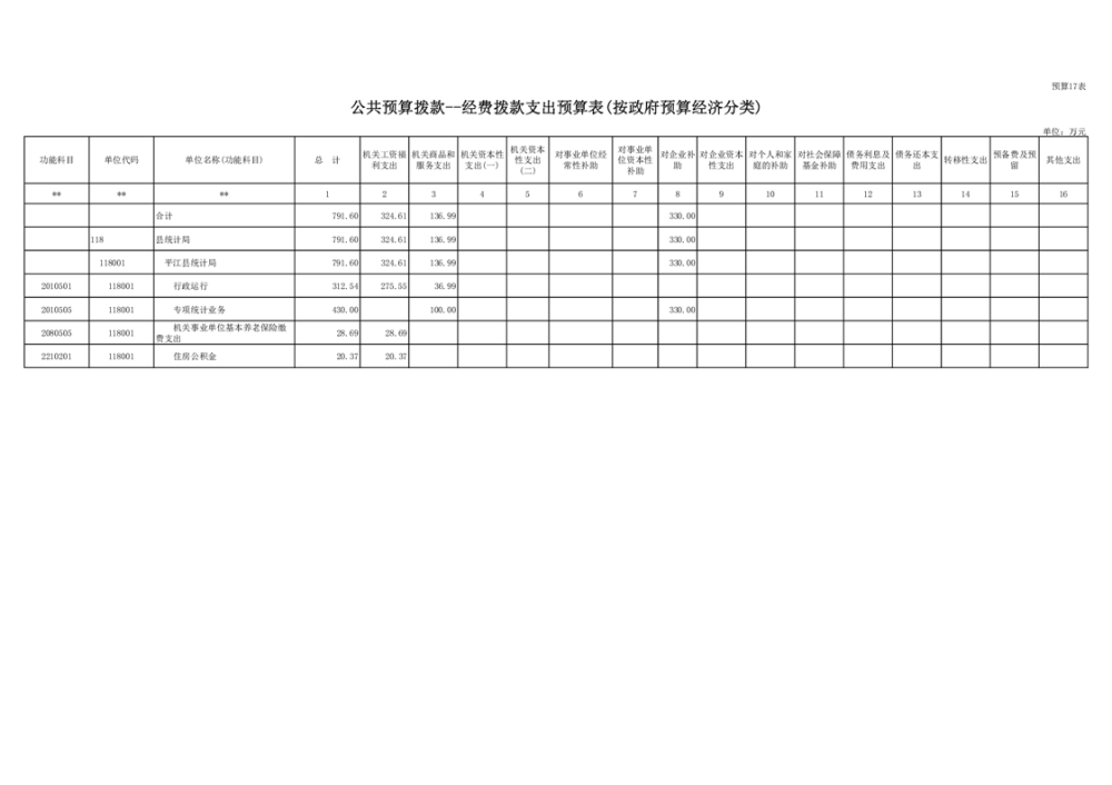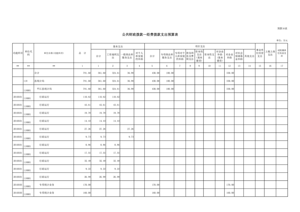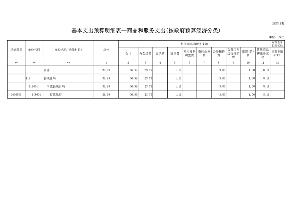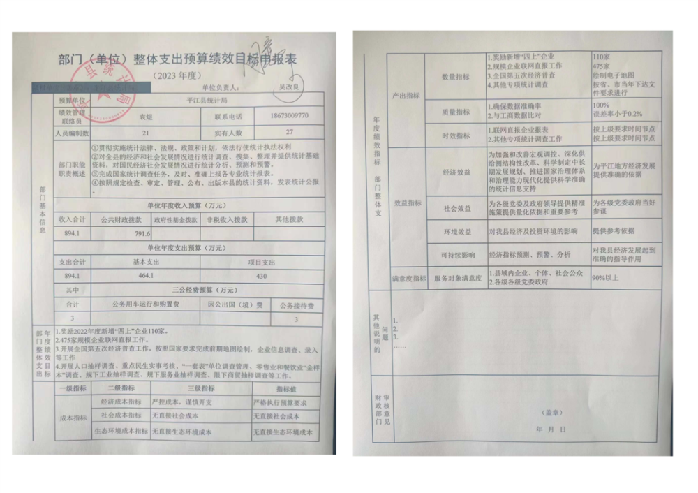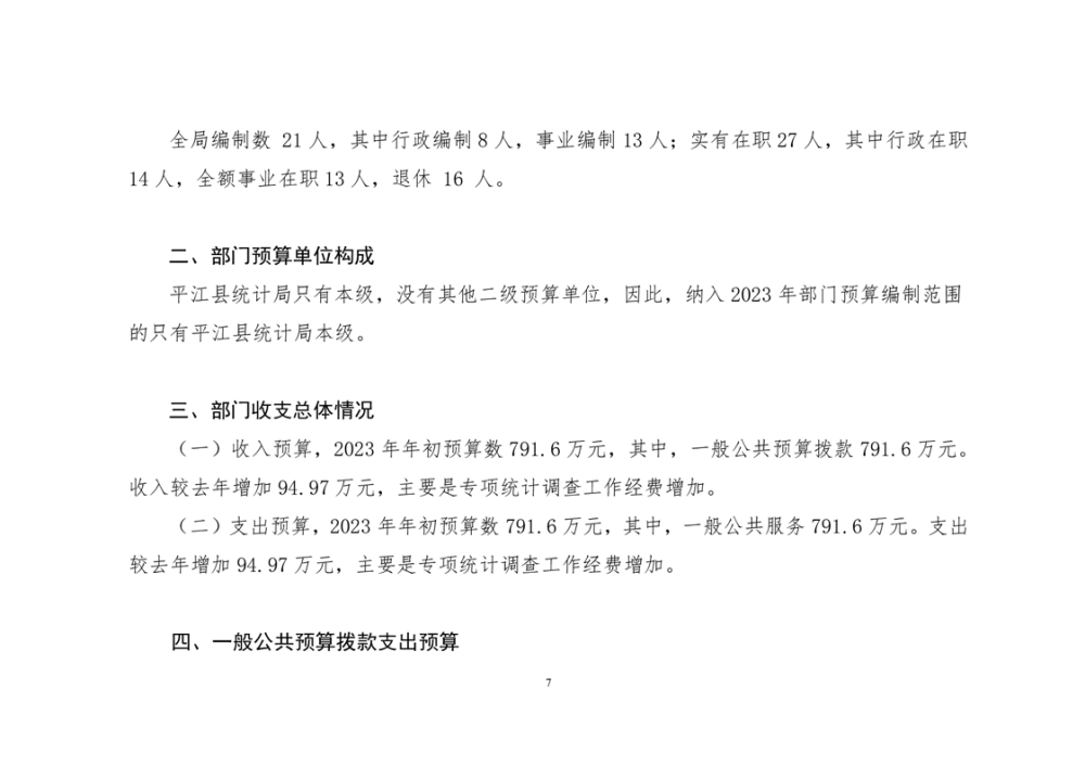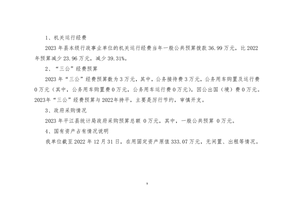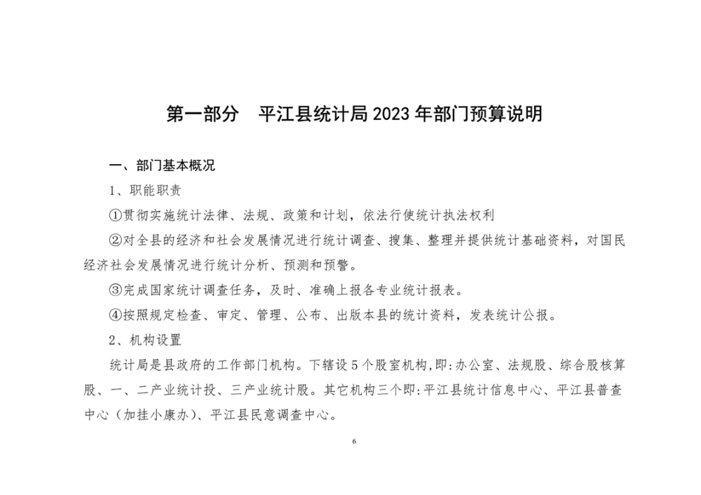 平江县统计局2023年度部门预算公开