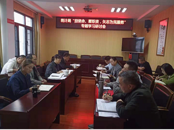 10月29日上午,县统计局召开“担使命、履职责、矢志为民服务”专题研讨、调研成果交流及对照党章党规找差距专题会,县委主题教育第一指导组副组长黄冬明到会指导,统计局班子成员及股室负责人参加会议,局党组书记吴改良主持会议。