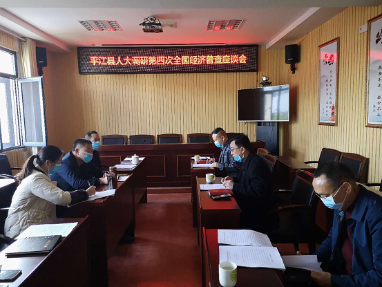 3月20日上午,县人大财经委主任委员童德思一行三人到县统计局调研平江县第四次全国经济普查工作调研座谈。县统计局党组书记吴改良、局长朱平洋、分管“四经普”副局长艾远根及普查办主任方党义参加。