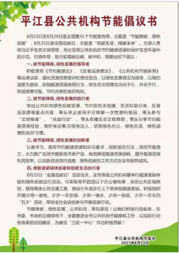 8月23日至8月29日是全国节能宣传周,其中全国低碳日定为8月25日。按照国家、省、市、县的统一部署,我局结合疫情防控工作实际,在做好常态化疫情防控的同时,根据节能宣传周和低碳日主题,积极组织干部职工开展“线上+线下”宣传工作,运用网络、微信、短信等方式发送节能公益短信息,倡导绿色生活,扩大宣传范围。重点宣传节能降碳和绿色发展理念,普及节能降碳知识,倡导全民节能意识。并组织干部职工开展“五少”活动:少用一度电、少开一天空调、少用一滴水、少用一张纸、少开一天车,做到节能降碳从我做起。(方雪)