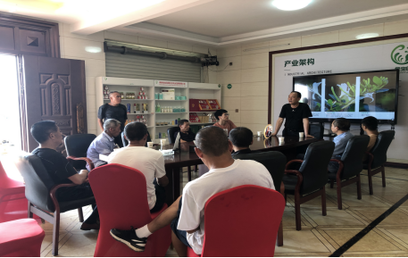 在基地负责人的陪同下,一行人顶着烈日的曝晒,一步一步走到了基地中心,成山成片的金银花树长势良好,种植已初具规模。在行走参观的途中,基地负责人边走边详细介绍了该基地打造过程、金银花品种筛选以及栽种的技巧等信息。在随后召开座谈上,该基地种植能手向大家进一步介绍了金银花的特性,金银花是大家熟知的一种中药材,全身是宝,根、茎、叶、花均可入药,有抗菌消炎、清热解毒、疏风散热等药效,通过深加工已经应用于生活中的多种产品,且金银花具有易栽种、易成活、易培育、易采摘的特点,符合本地栽种条件,目前市场上的金银花供不应求,前景良好。通过种植能手的讲解,大家对金银花有了更加清晰的认识,由此表达出种植金银花的强烈兴趣。