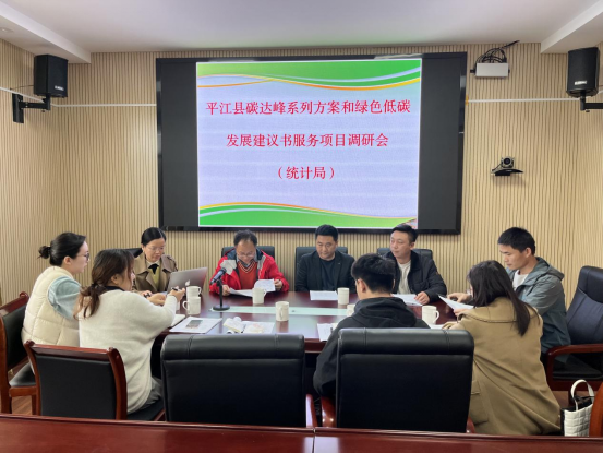 4月4日上午,平江县发改局分管负责领导带队、会同平江县碳达峰系列方案和绿色低碳发展建议书服务项目组到县统计局调研。首先专题调研组介绍调研目的、调研安排,主要了解平江县使用绿色低碳能源等情况。发改局相关负责人介绍目前县低碳相关工作、存在问题及政策建议。
