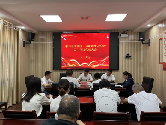 4月17日,中共平江县统计局机关支部召开2022年度组织生活会暨民主评议党员大会。局党组班子成员和全体党员参加会议。