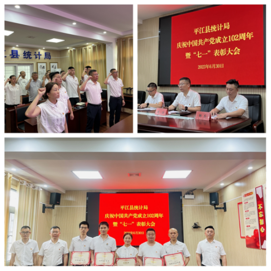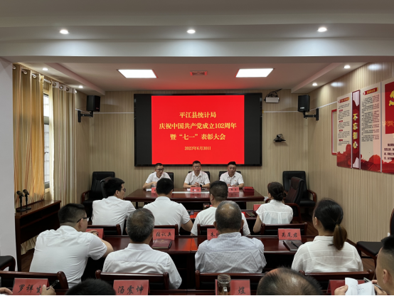 为庆祝建党102周年,重温党的光辉历程,继承和发扬党的光荣传统和优良作风,持续激发全局党员干部的荣誉感、责任感、使命感,开创廉政建设工作新局面。6月30日上午,平江县统计局召开庆祝建党102周年暨“七一”表彰大会和廉政教育主题会。县委第五巡察组全体成员、统计局全体党员干部和驻村工作队参会。会议分两个阶段进行: