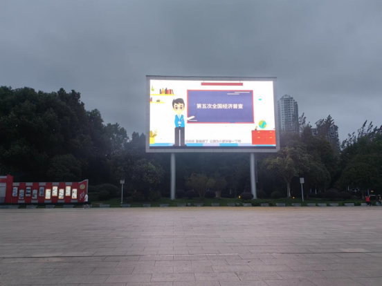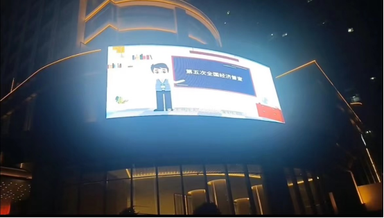 我县在天岳广场及各大酒店的电子显示屏投放“五经普”宣传视频