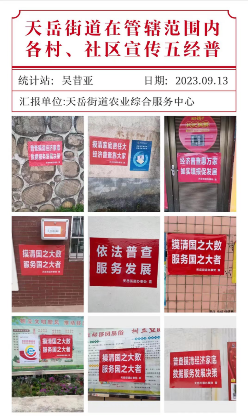 2023年6月五经普工作启动后,我县通过天岳广场、各大酒店的电子显示屏、企业、居民微信群等载体强化宣传。同时积极转发国务院、湖南省经普办制作图解、漫画、短视频等多样化新媒体产品在今日平江微信公众号以及通过移动运营商公司发送宣传短信、微信朋友圈推送。