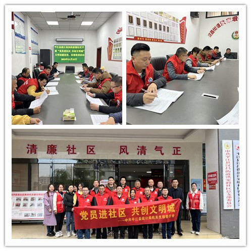 今年是我县争取第七届全国文明城市的决胜之年,为助力平江夺取创建全国文明城市的最终胜利,11月16日,县统计局机关党支部志愿团队进驻洪家塅社区开展“党员进社区 共创文明城”主题党日活动。会上,社区书记向团队介绍了当前文明创建工作进展,并对文明创建宣传、调查问卷进行培训。