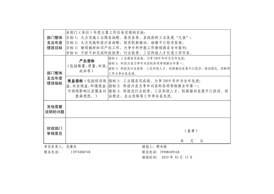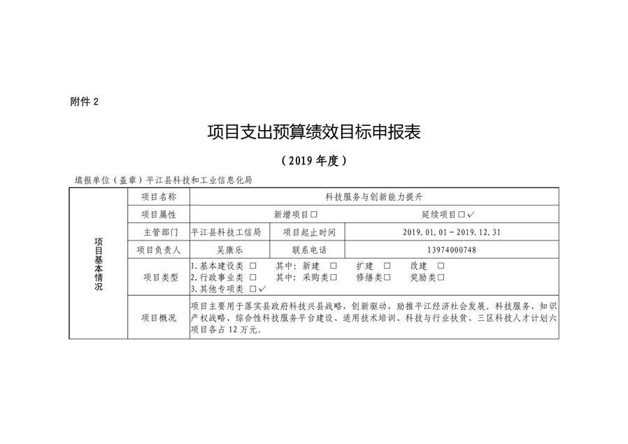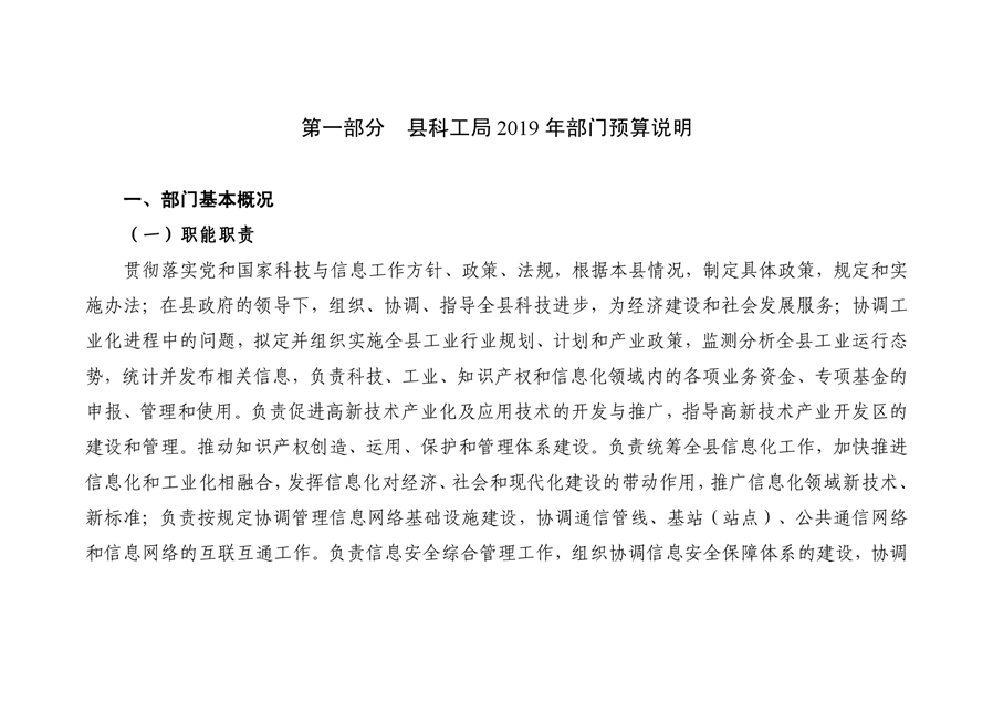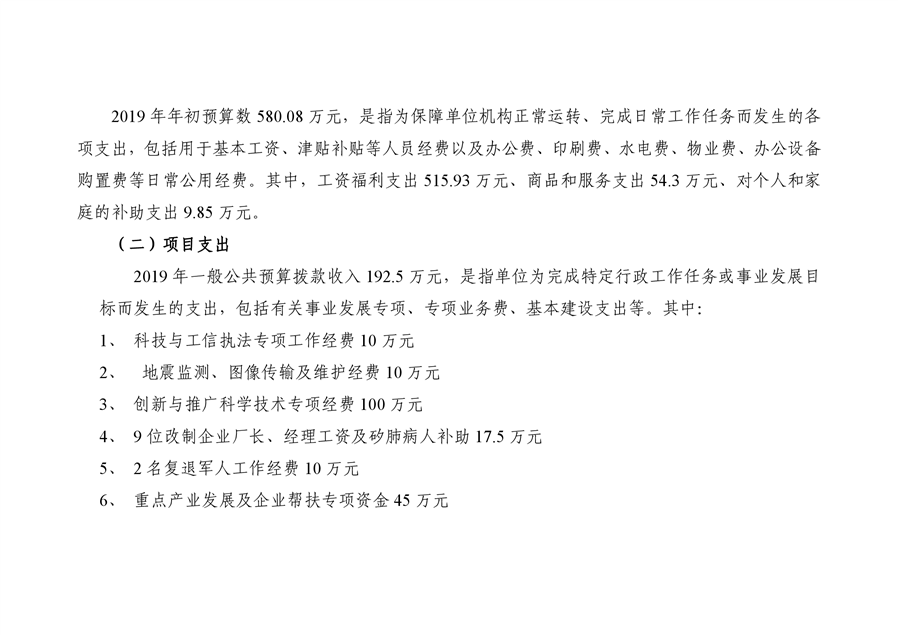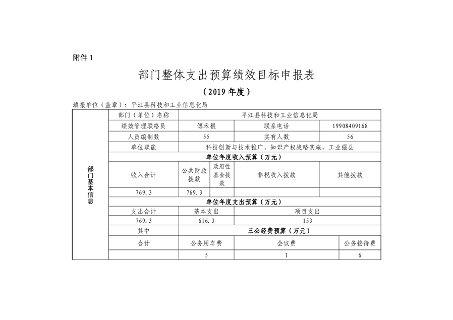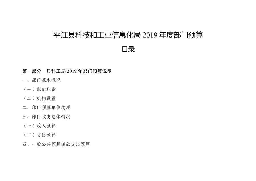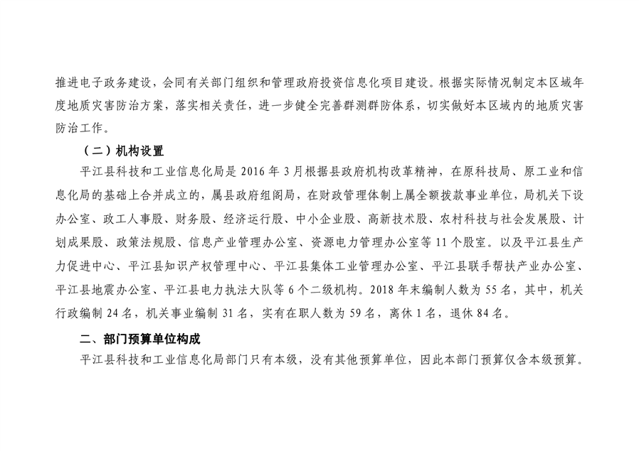 平江县科技和工业信息化局2019年度部门预算编报说明