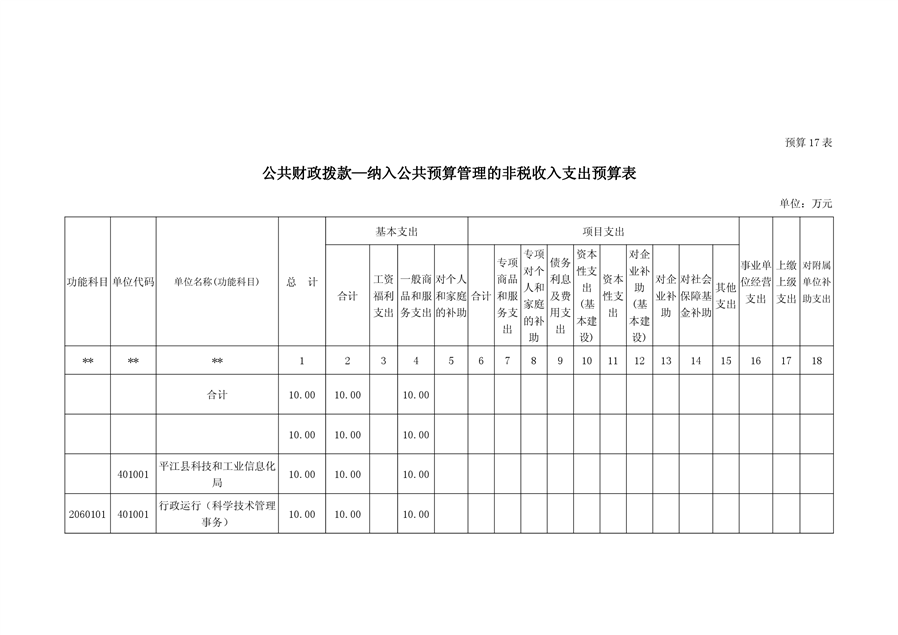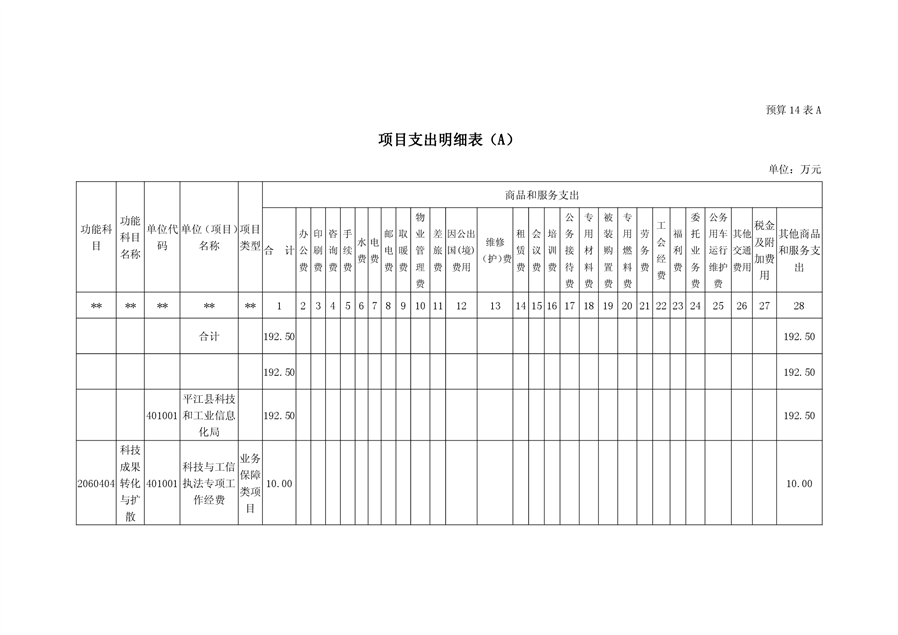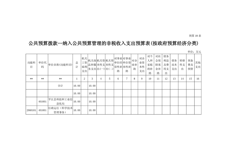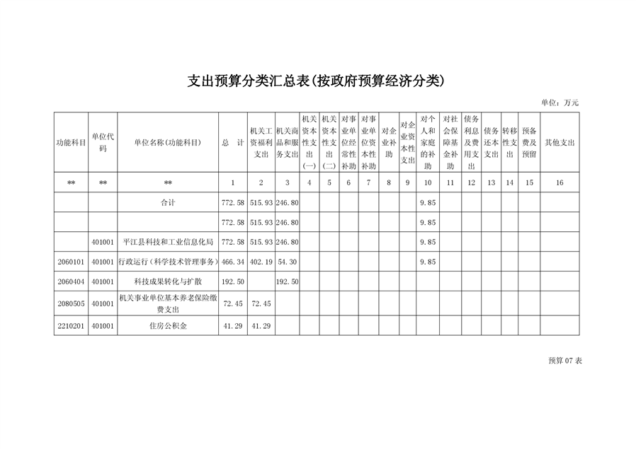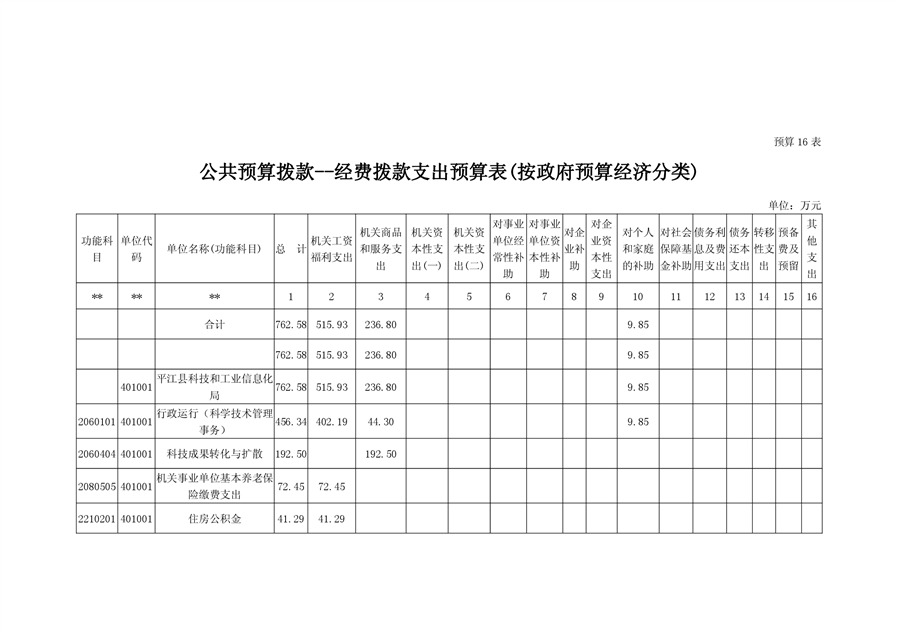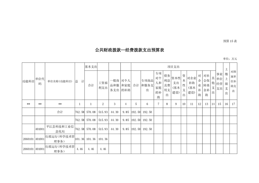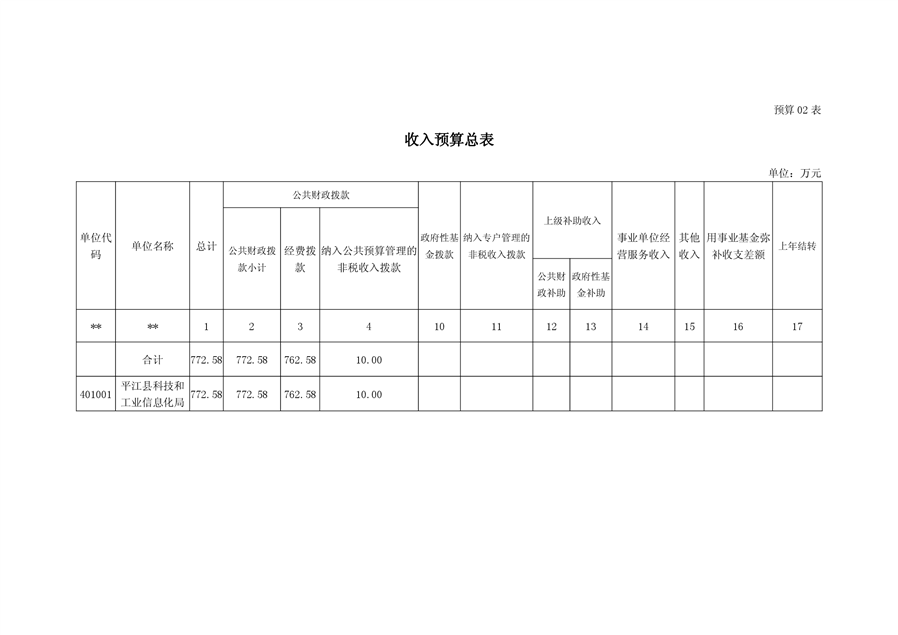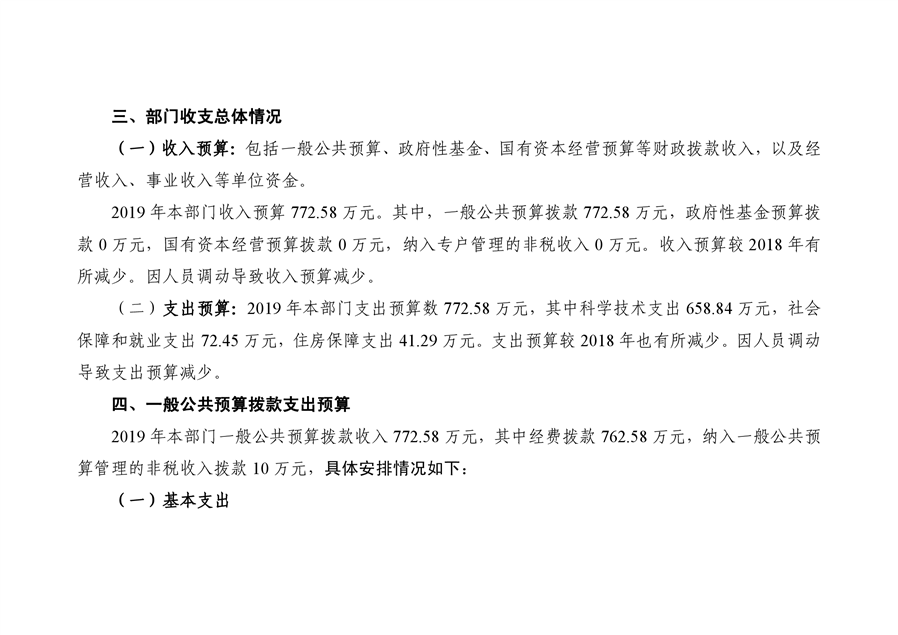 平江县科技和工业信息化局2019年度部门预算编报说明