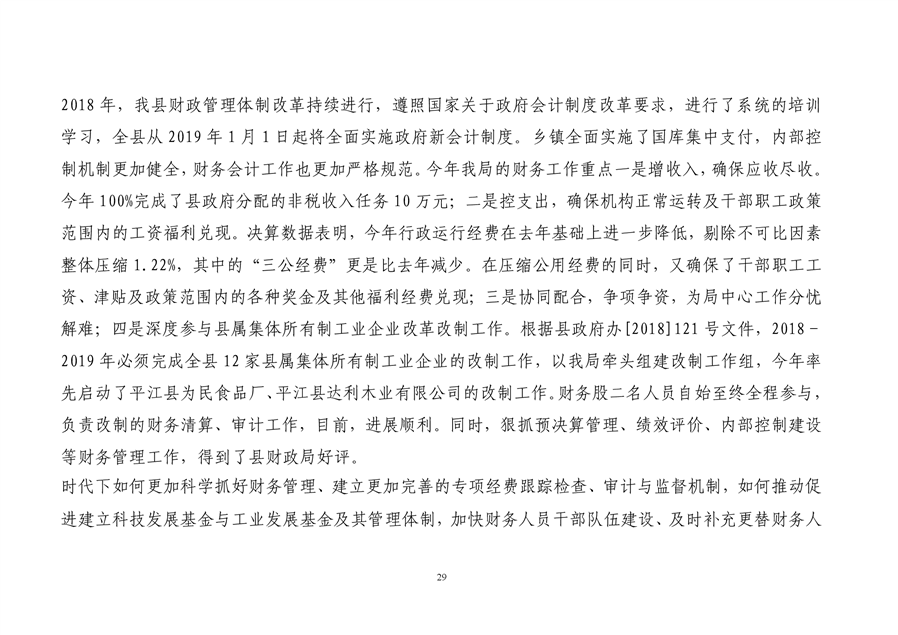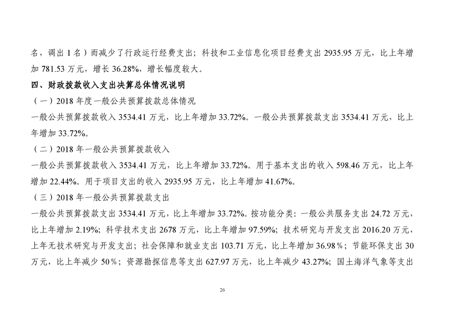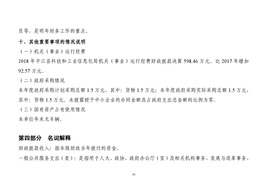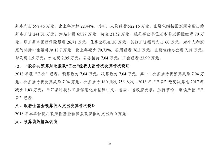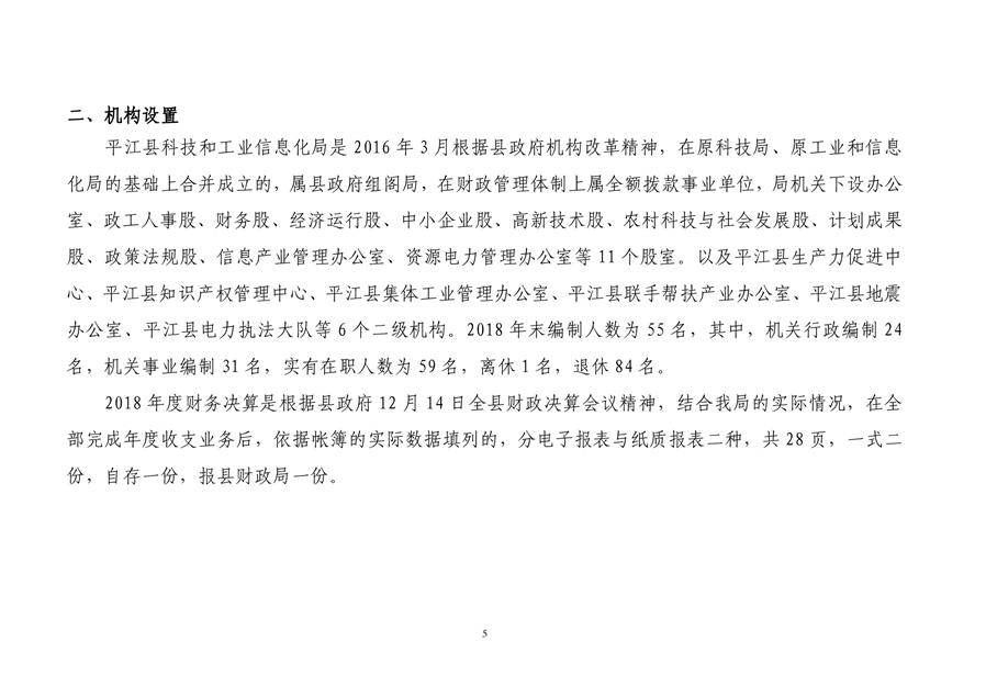 平江县科技和工业信息化局2018年度财务决算编报说明