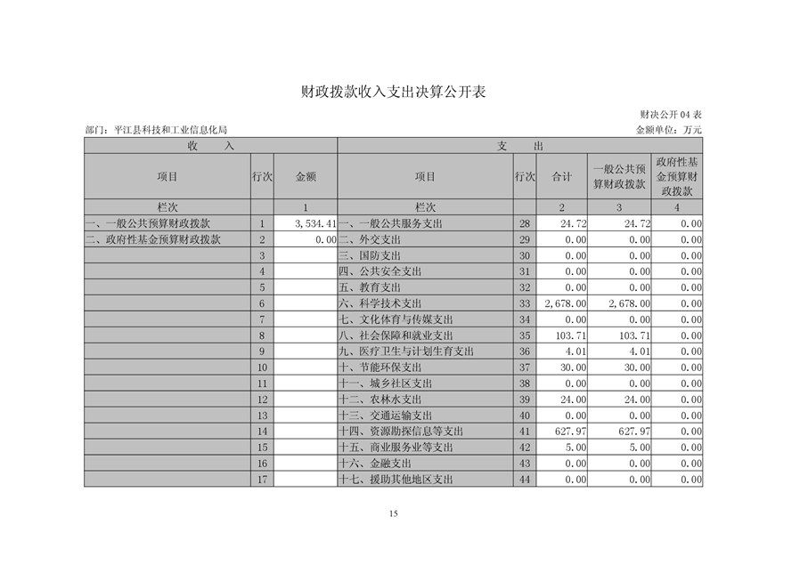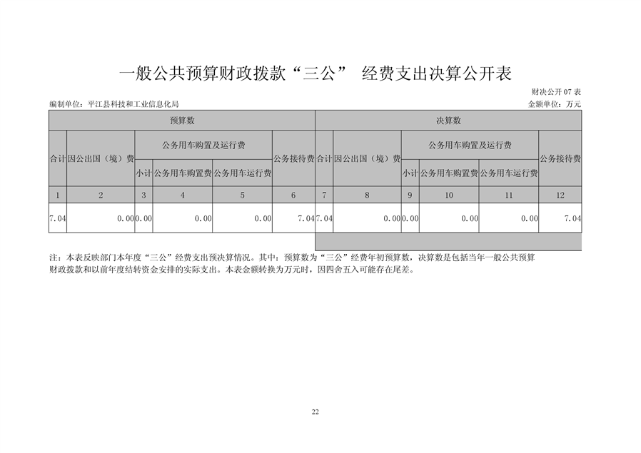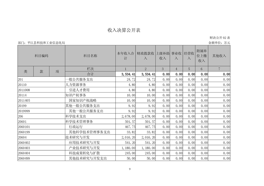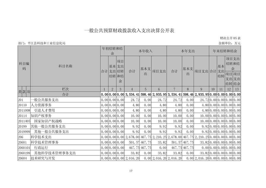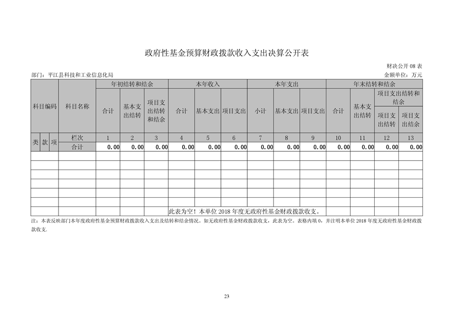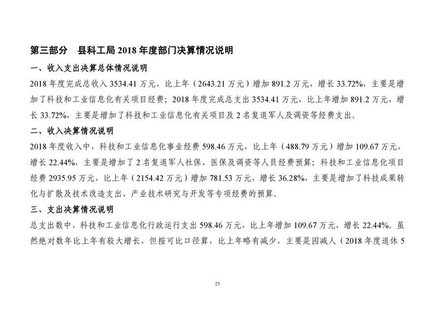 平江县科技和工业信息化局2018年度财务决算编报说明