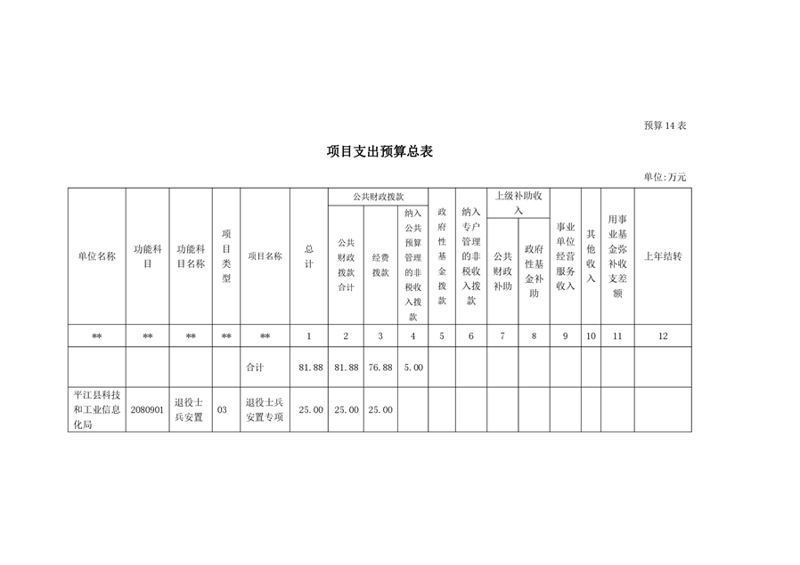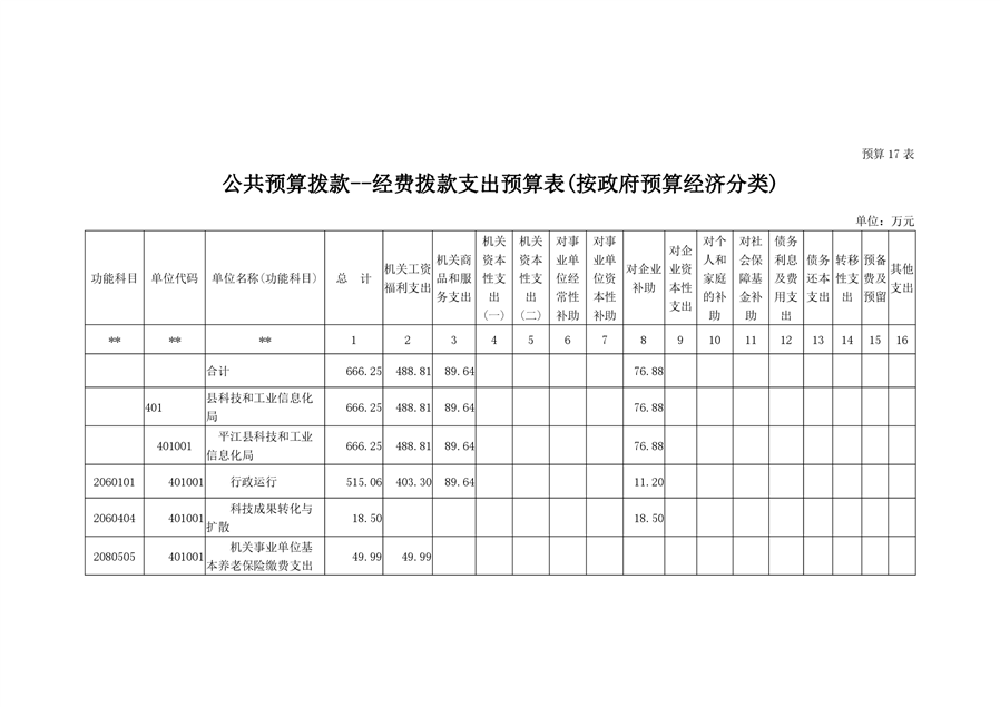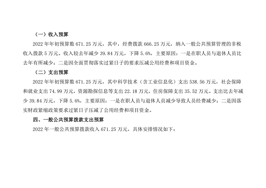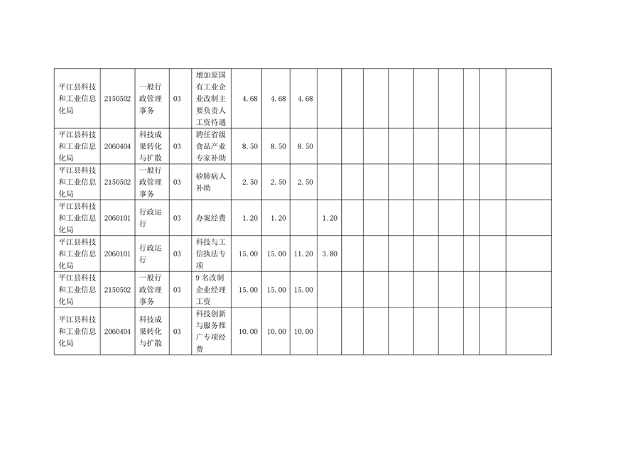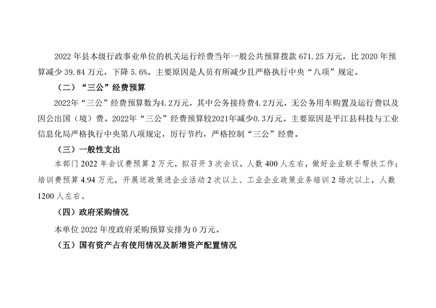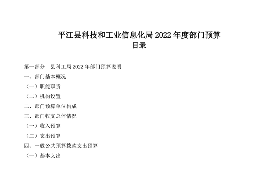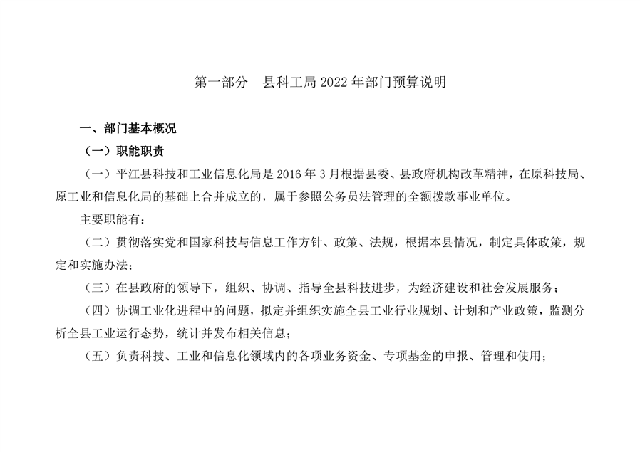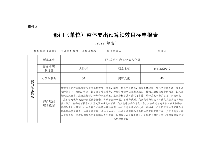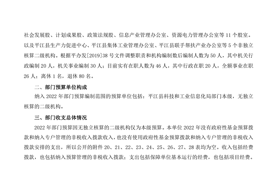 平江县科技和工业信息化局2022年度部门预算