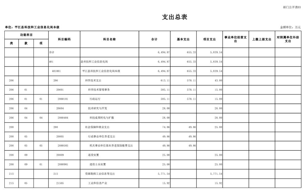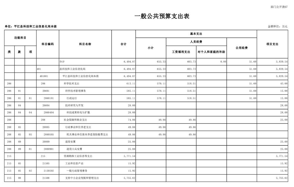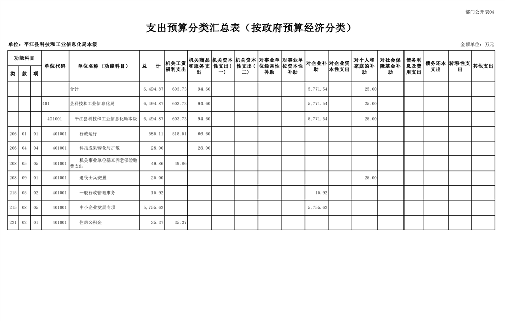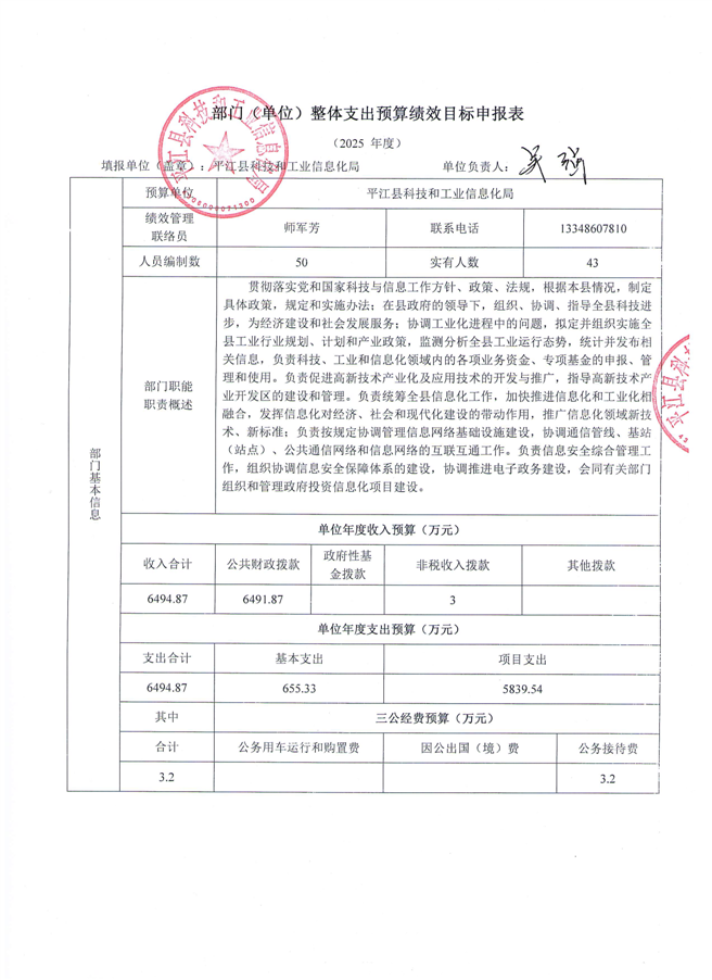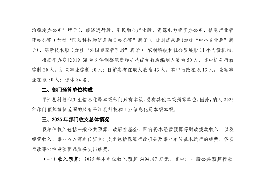 平江县科技工信局2025年度预算