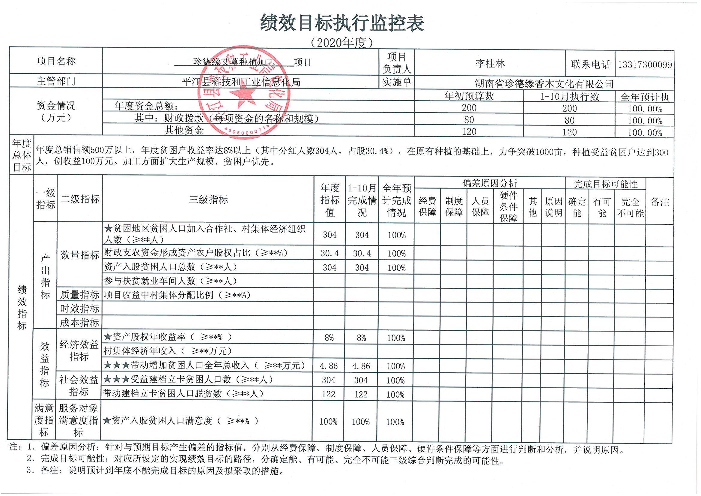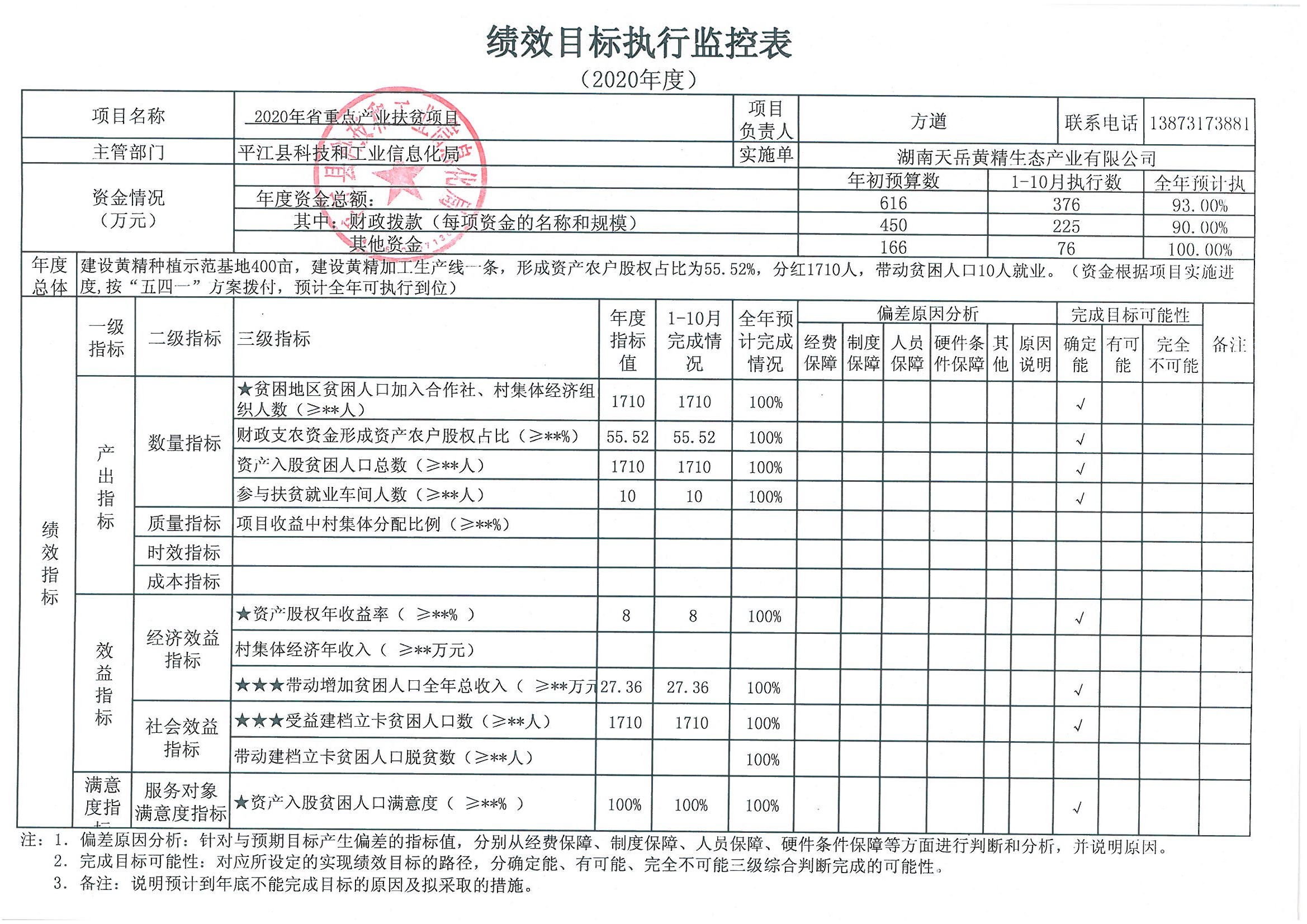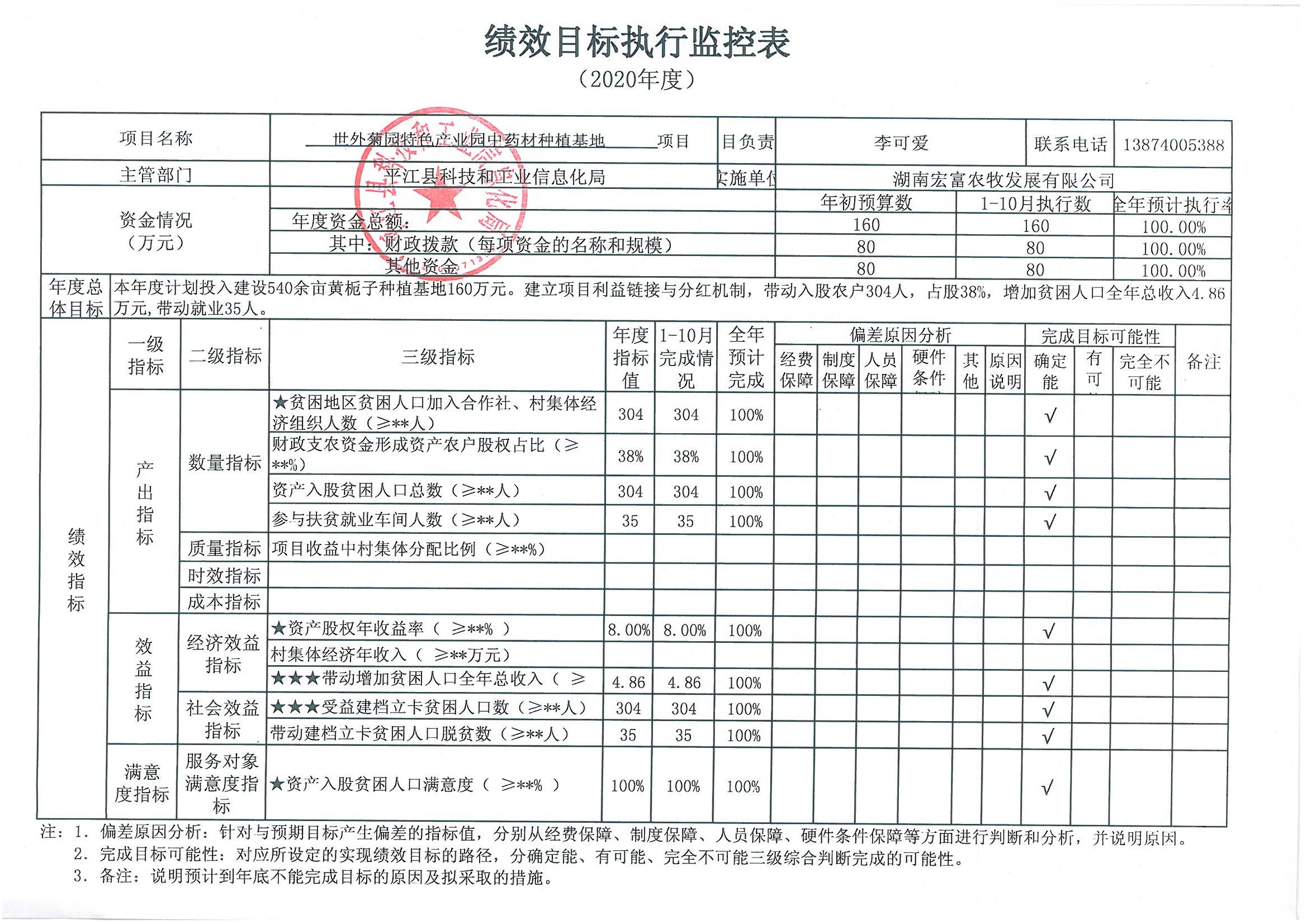 2020年扶贫项目绩效监控表