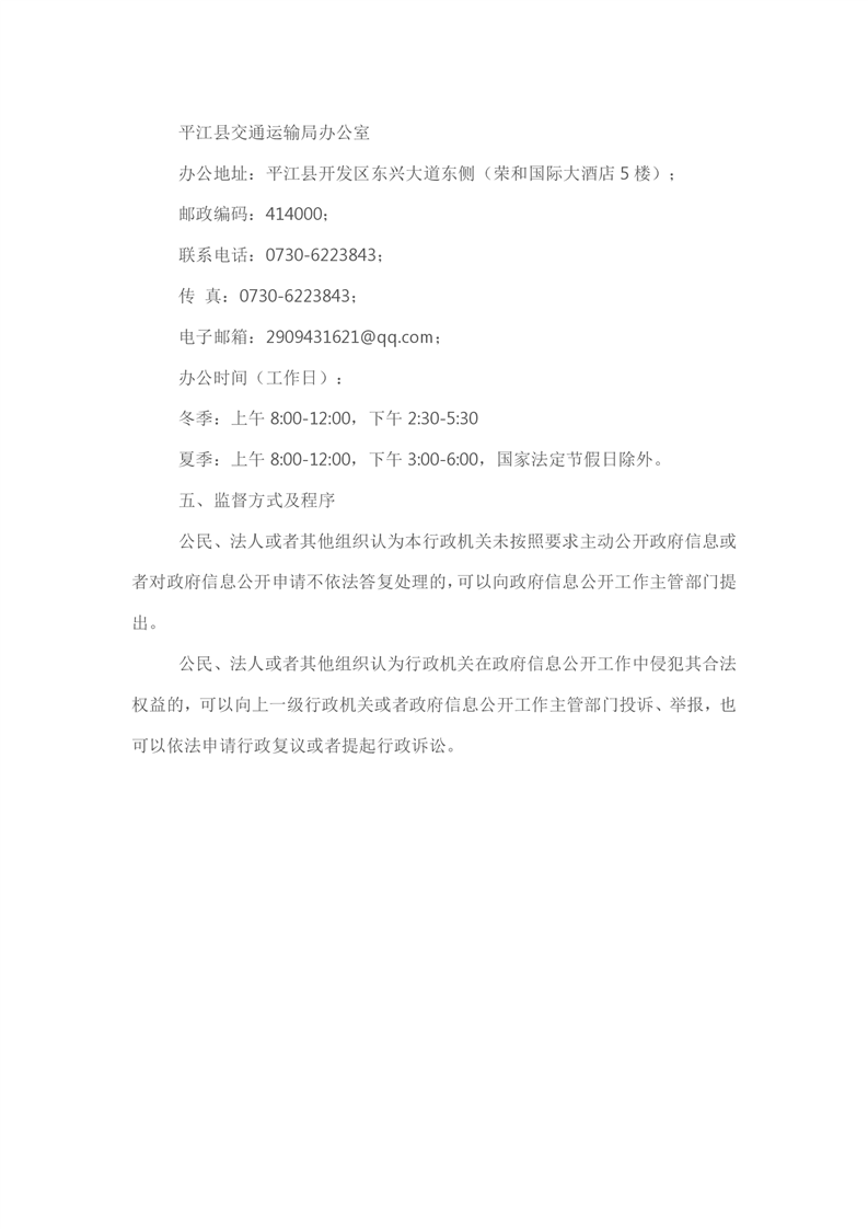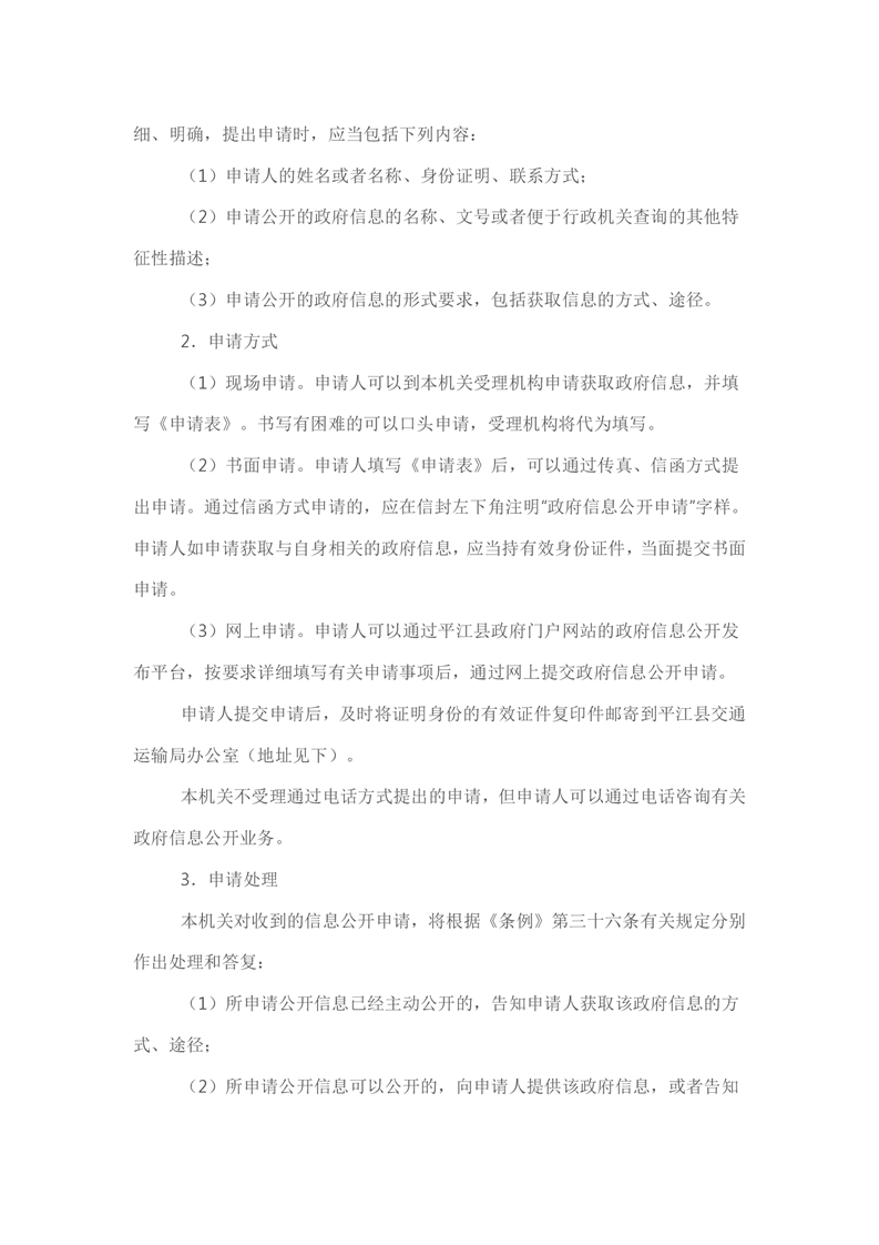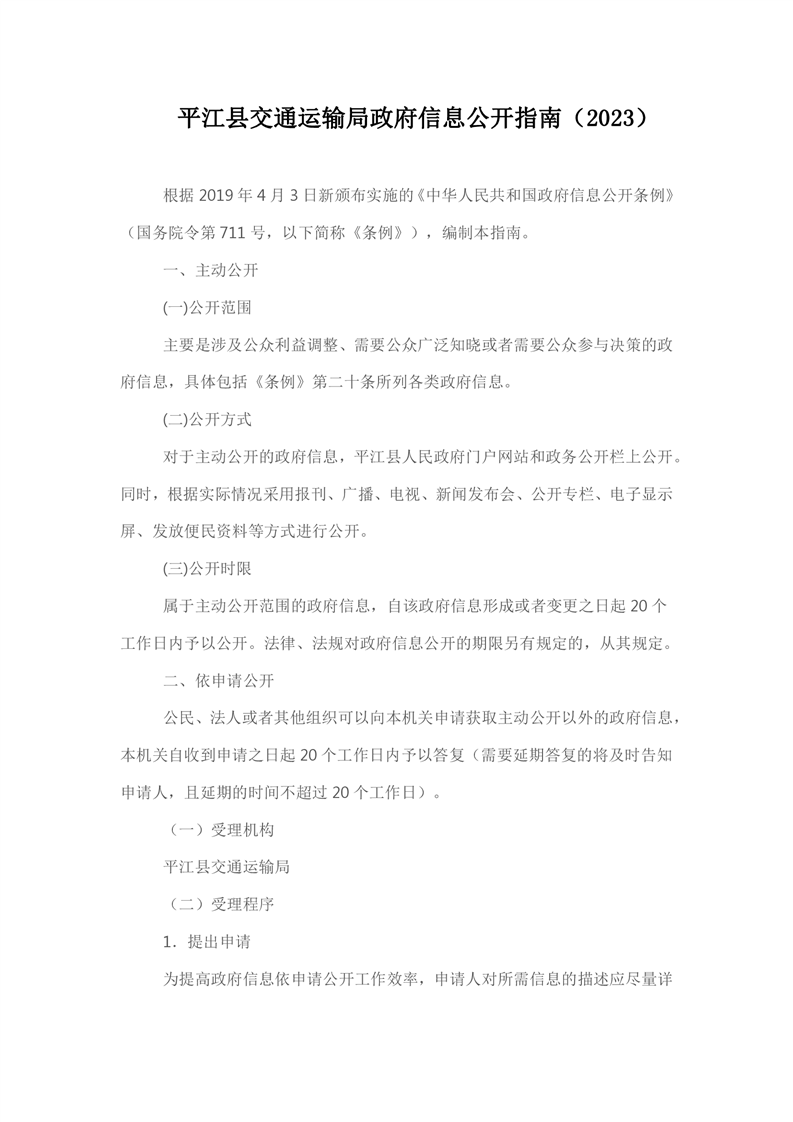 平江县交通运输局政府信息公开指南(2023)