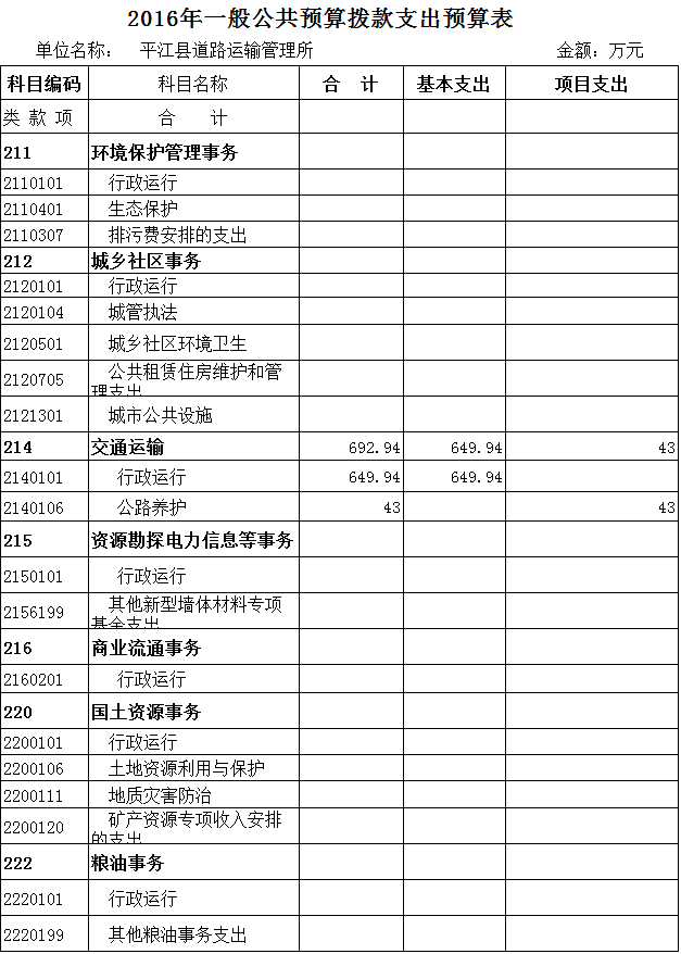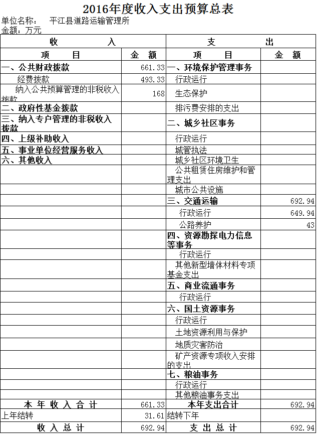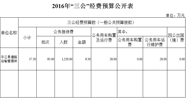 平江县运管所2016年预算