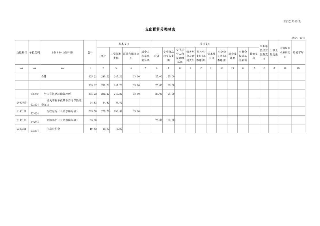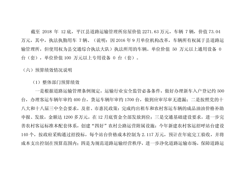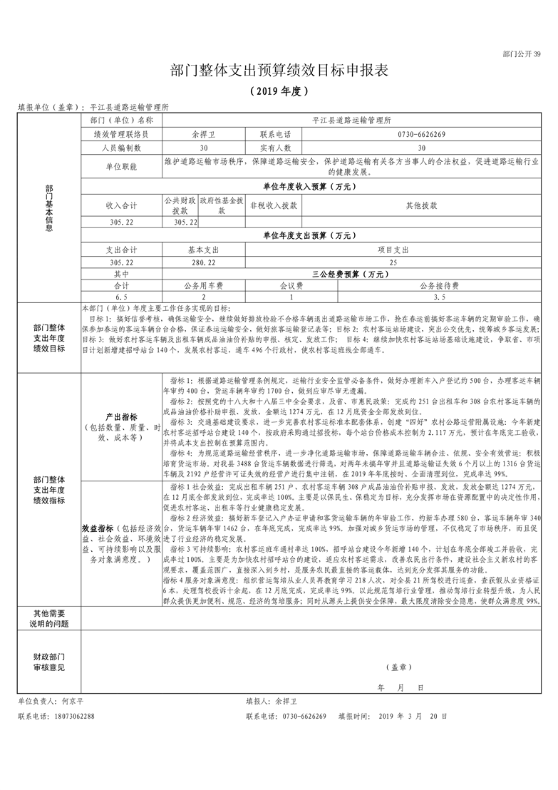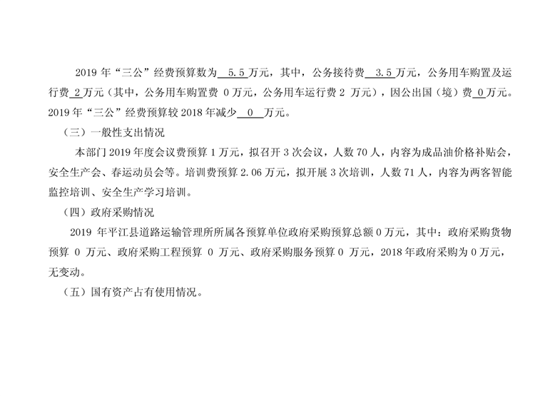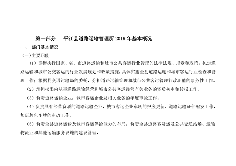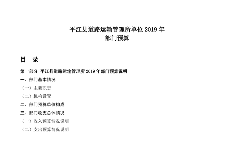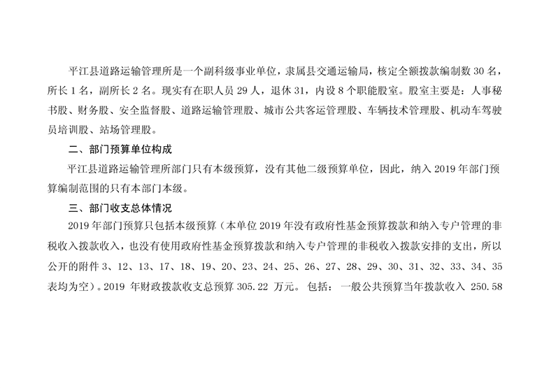 平江县道路运输管理所2019年部门预算编报说明