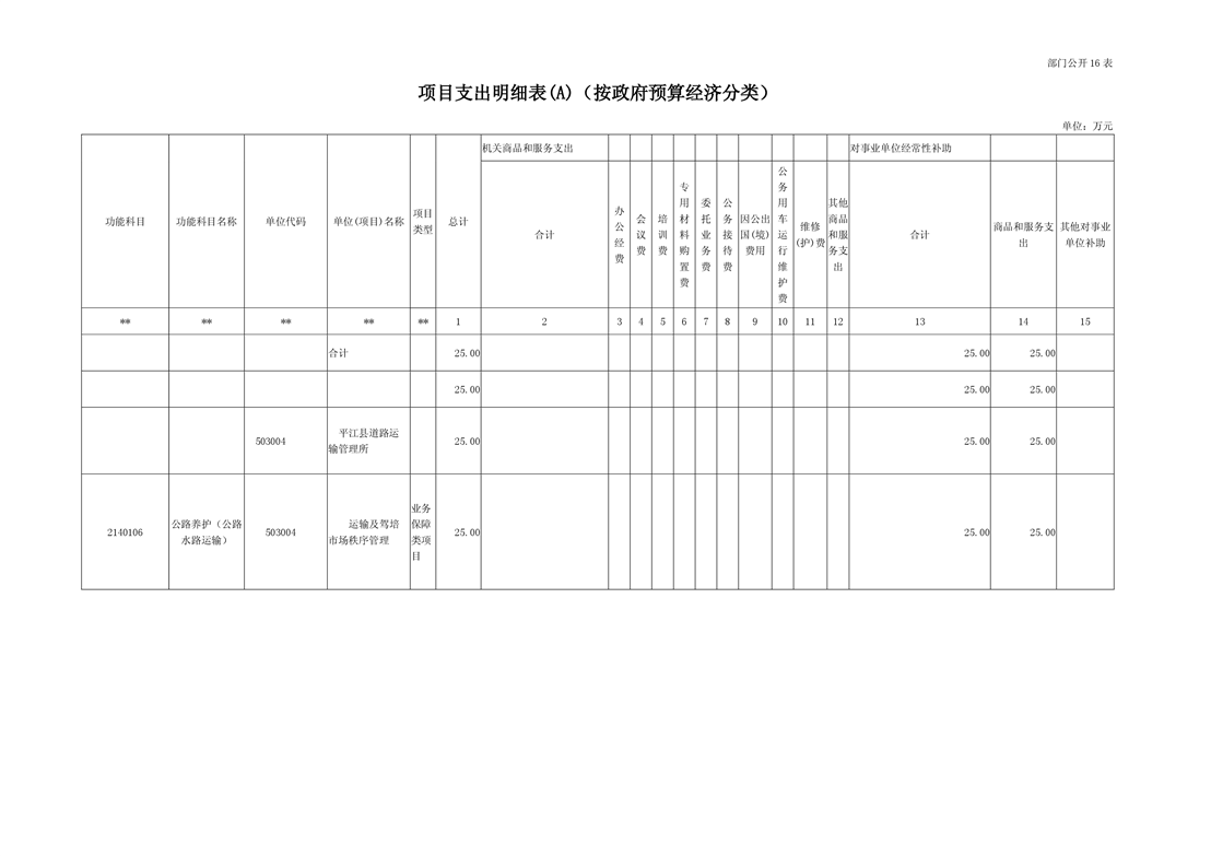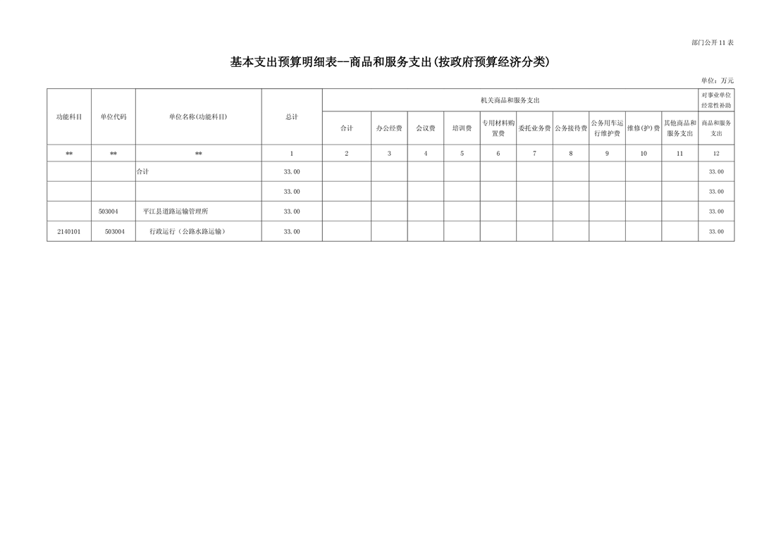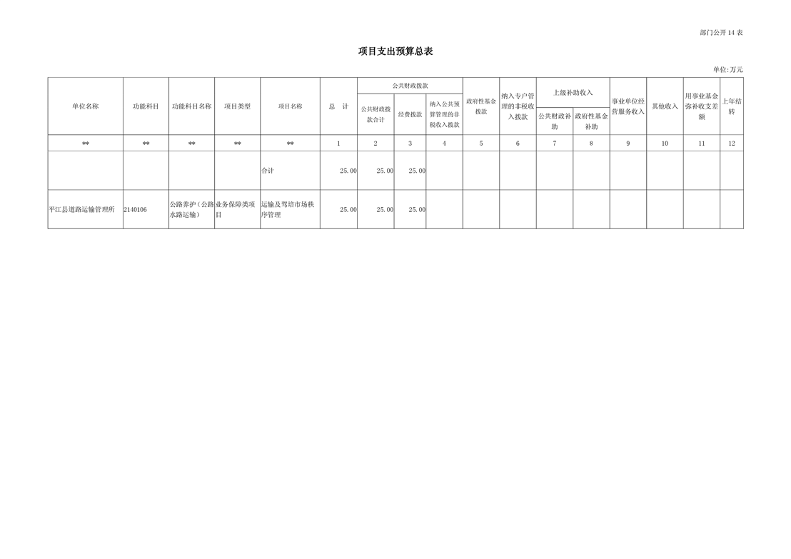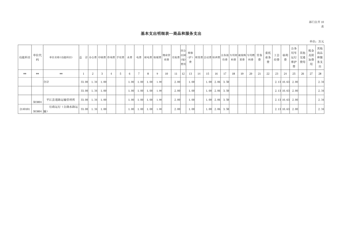 平江县道路运输管理所2019年部门预算编报说明